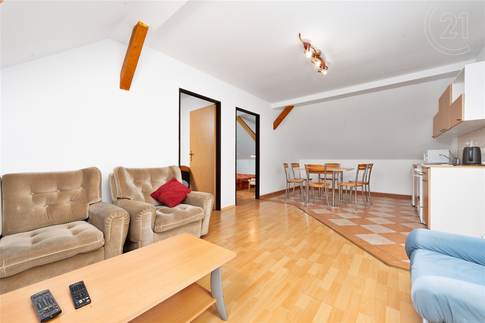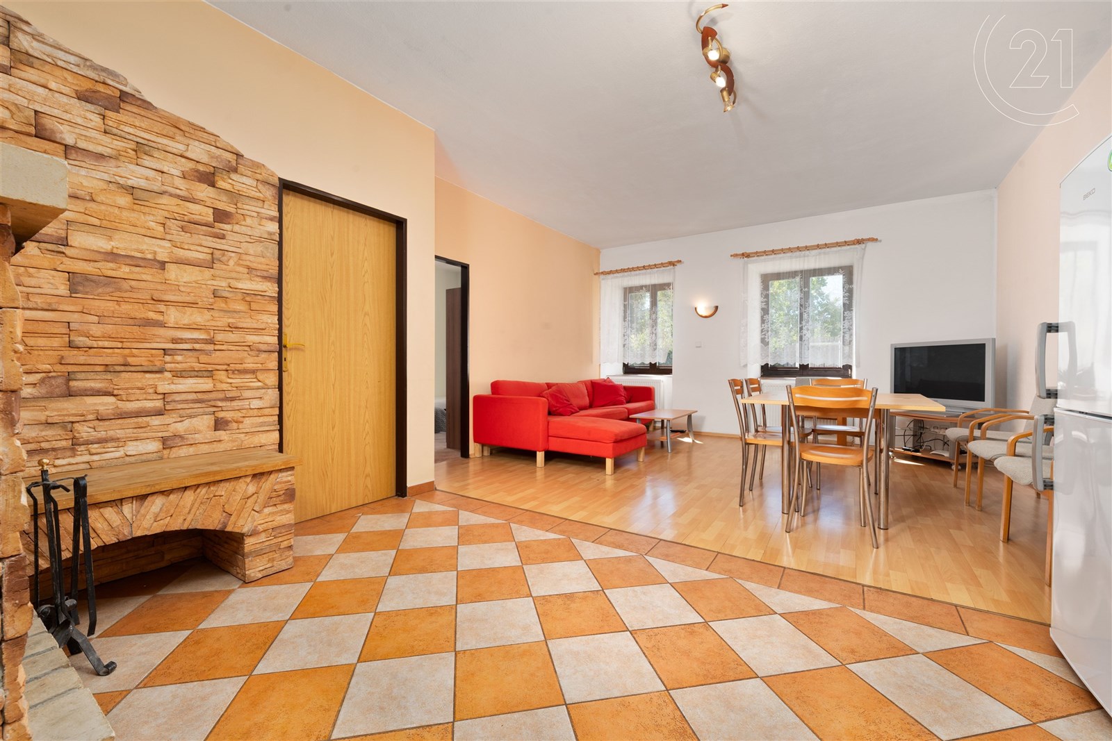 V přízemí vás přivítá prostorný byt 3+kk s krbovými kamny, kde si v zimě užijete tu pravou atmosféru.