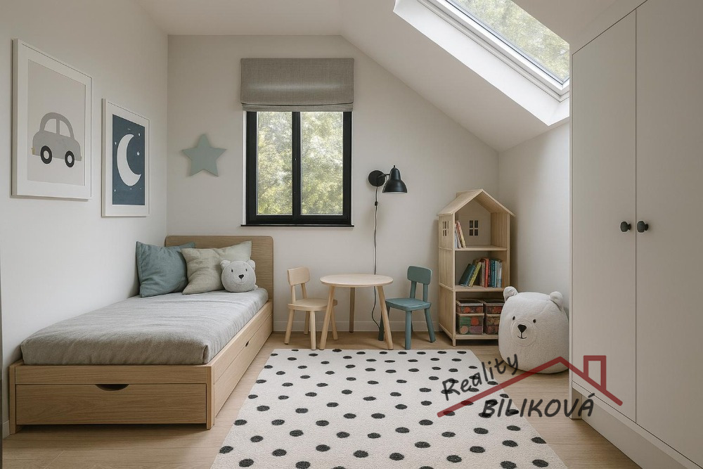 • Podkroví: dva prostorné pokoje + půdní prostor vhodný pro další vestavbu.