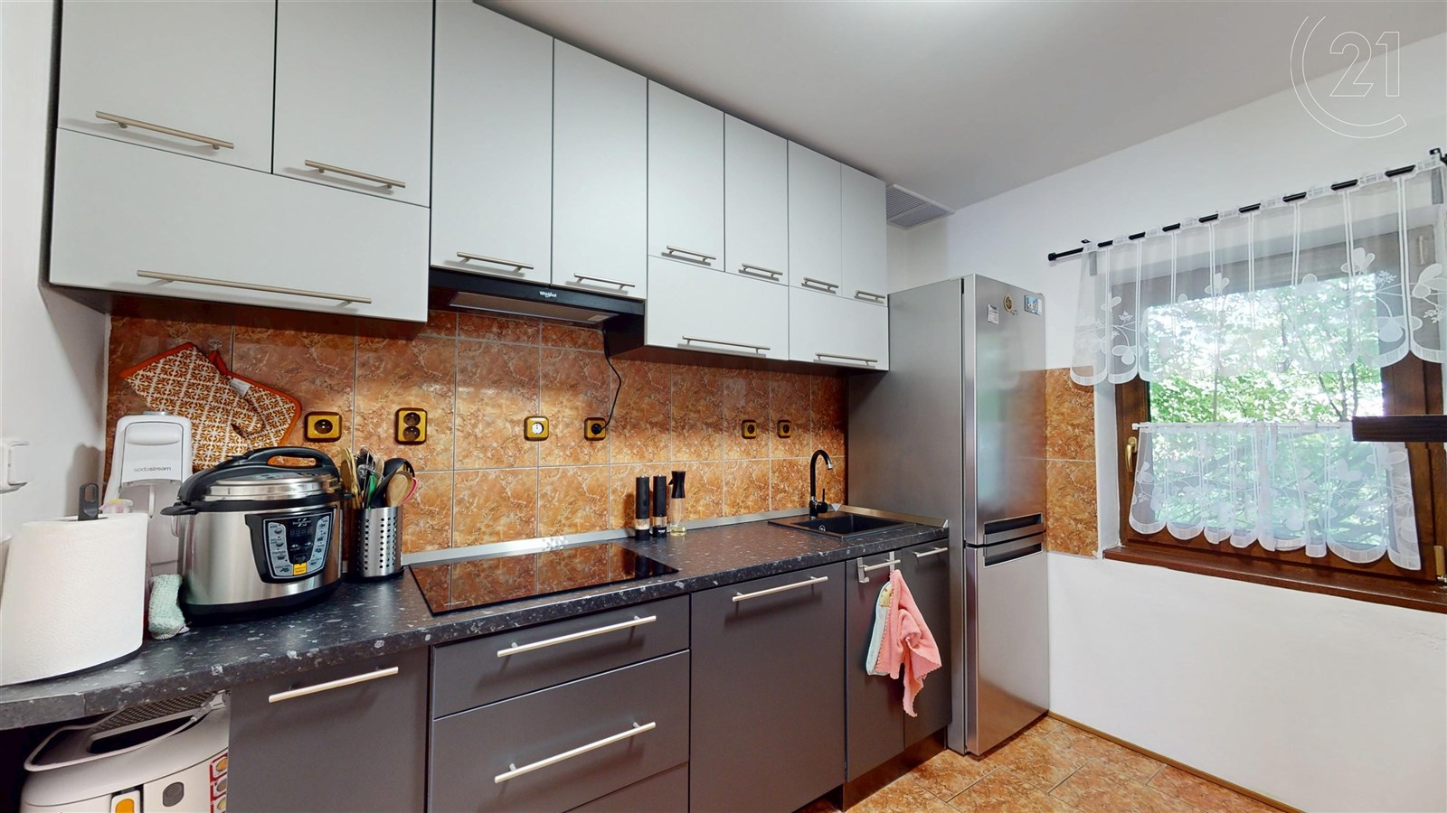 Dům je po částečné rekonstrukci: nové omítky, dřevěné obložky, moderní vinylové podlahy v pokojích, snížené a zateplené stropy, nová kuchyňská linka se zabudovanými spotřebiči.