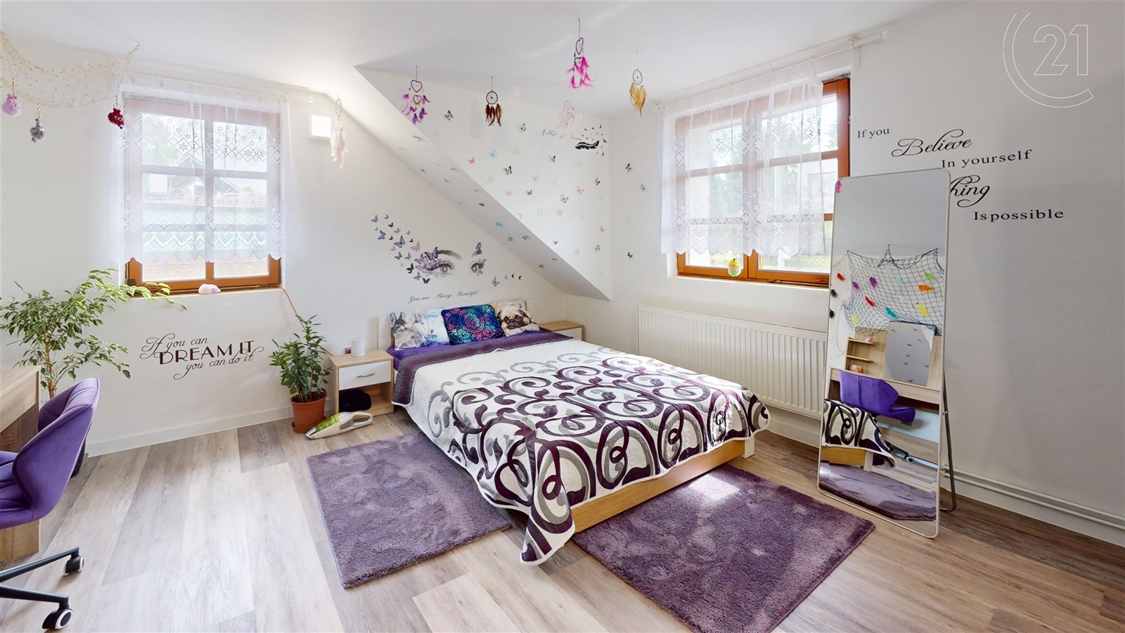 Čtyři samostatné pokoje v patře – ideální jako ložnice, dětské pokoje i pracovna.