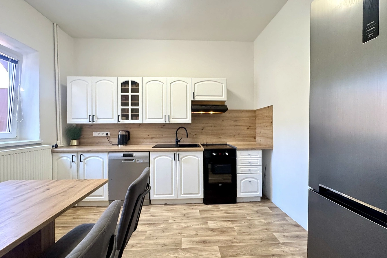 Dovoluji si Vám nabídnou k prodeji RD 3+1 s garáží, dílnou, pergolou s krbem a zahradou v Tachově, ul. Švermova. Užitná plocha domu činí 110 m2. Celková výměra pozemků činí 510 m2. Zastavěná plocha je o výměře 106 m2, zahrada je o výměře 404 m2. Předmětem prodeje je částečně podsklepená stavba s navazující dílnou (využíváno jako sklad), garáž, pergola a zahrada. 1.NP domu tvoří vstupní chodba, kuchyň s jídelnou, obývací pokoj, koupelna s vanou a samostatné WC. V podkroví jsou vybudovány dvě ložnice a WC. Suterén sloužil jako kotelna s uhelnou. Kotel na tuhá paliva již není využíván (nesplňuje emisní třídu). Dnes je sklep využíván ke skladovým účelům. V současné době je dům vytápěn ústředně plynovým kotlem. Dům byl užíván jako dvougenerační, v podkroví je možné obnovit kuchyňskou linku. Součástí prodeje je navazující dílna na RD, garáž s navazující pergolou s venkovním krbem a navazující zahrada, která je dle územního plánu určena k výstavbě. V ceně je zahrnuta kuchyňská linka, sporák, převážná část vybavení dětského pokoje a doulůžko v ložnici. Dům je po částečné rekonstrukci v období 2024-2025: komplet kuchyně (voda a odpady, elektřina, omítky, podlahy), obývacího pokoje - omítky, podlahy, rozvody elektřiny. V podkroví jsou nové omítky stěn ložnic. Elektřina je z převážné části v mědi. Okna domu jsou v obytných částech plastová. Objekt je napojen na veřejný vodovod a kanalizaci.Město Tachov nabízí veškerou občanskou vybavenost. Dům je situován na okraji města v poklidné části. Je vhodný pro rodinu s dětmi, vyhledávající poklidné bydlení v blízkosti centra města a zároveň v blízkosti přírody.?
