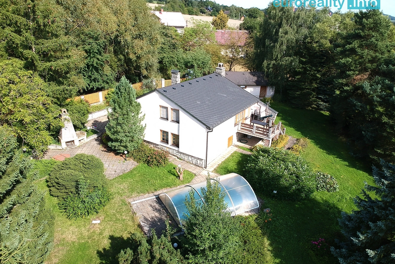 Na výjimečném místě nabízíme k prodeji dům s krytým bazénem. Ten se nachází v obci Troskovice v části obce Jivina, v těsné blízkosti hradu Trosky. Tento patrový cihlový dům je vhodný jak k rekreaci, tak i k celoročnímu bydlení. Má dvě patra a mezipatro a pyšní se prostornou hlavní místností s krbem - obývacím pokojem, kuchyní a masivním dřevěným schodištěm s dřevěným obkladem. Celý dům zaručuje pohodlné a příjemné bydlení i rekreaci. Obytný prostor tvoří pět pokojů, dvě koupelny a samostatné WC, které lze snadno přizpůsobit individuálním potřebám a vkusu.