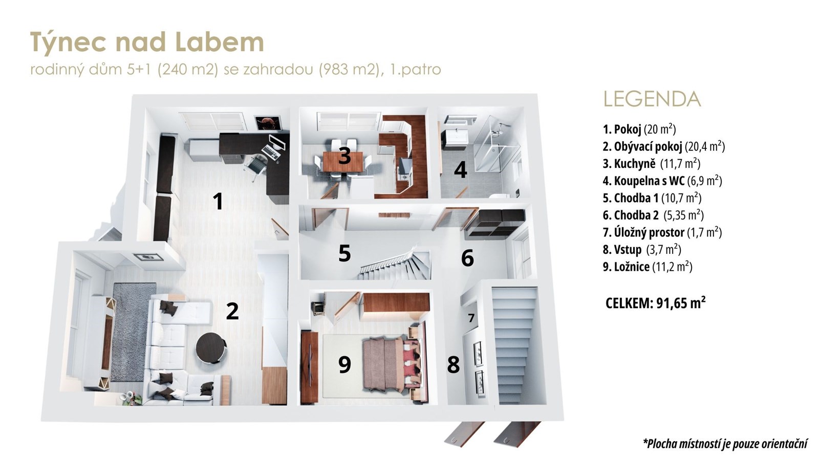 Prostor pro celou rodinu: Díky užitné ploše 240 m2 a chytré dispozici zde mohou pohodlně žít dvě generace, případně lze patro využít pro podnikání. Příprava na druhou kuchyni v patře je již hotová.