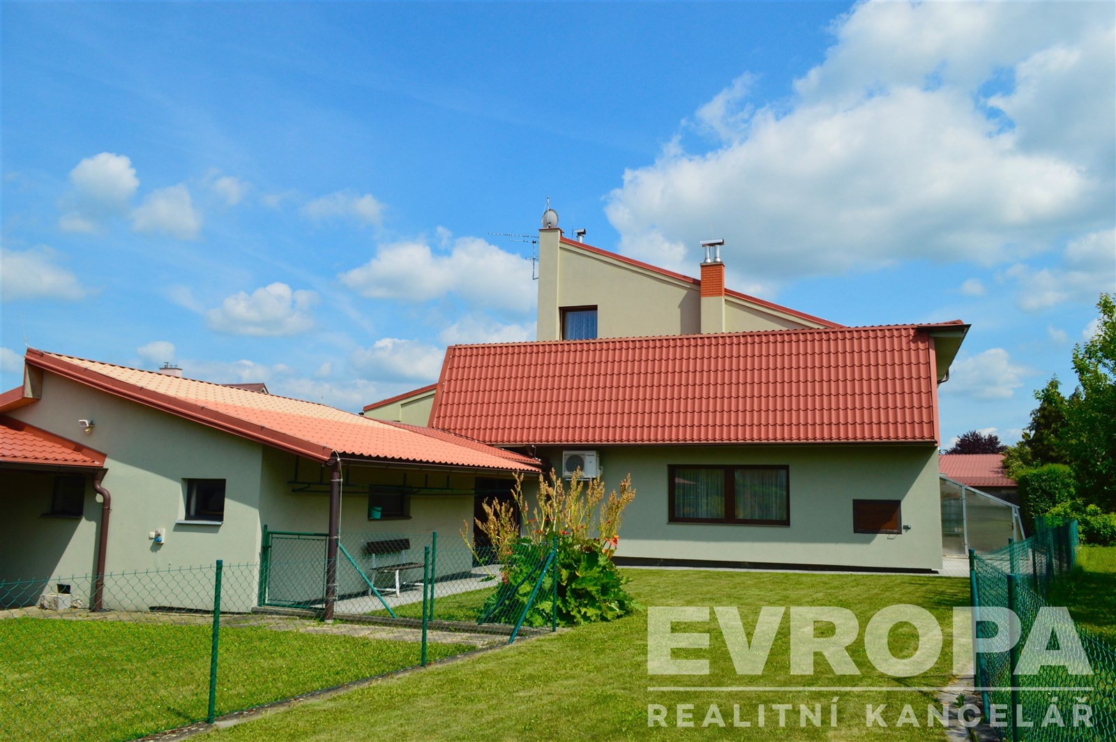 Uvnitř najdete moderní kuchyni spojenou s jídelnou, několik ložnic a dvě koupelny. Dům je vybaven tepelným čerpadlem, klimatizací, dálkově ovládanými žaluziemi a praktickými technologickými detaily. V suterénu se nachází sklep, dílna a prostor pro hobby. K tomu dvojgaráž, skleník a zahrada, která zve k hrám s dětmi, posezení pod pergolou nebo relaxaci po práci.