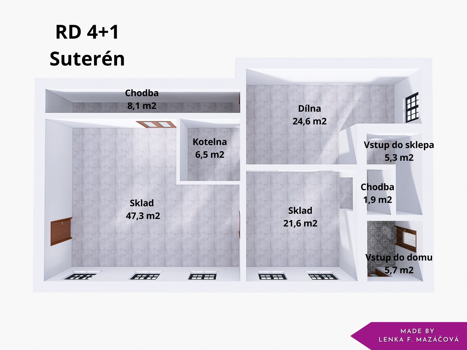 – v suterénu je aktuálně technické zázemí domu (kotelna, dílna, 2x sklad)