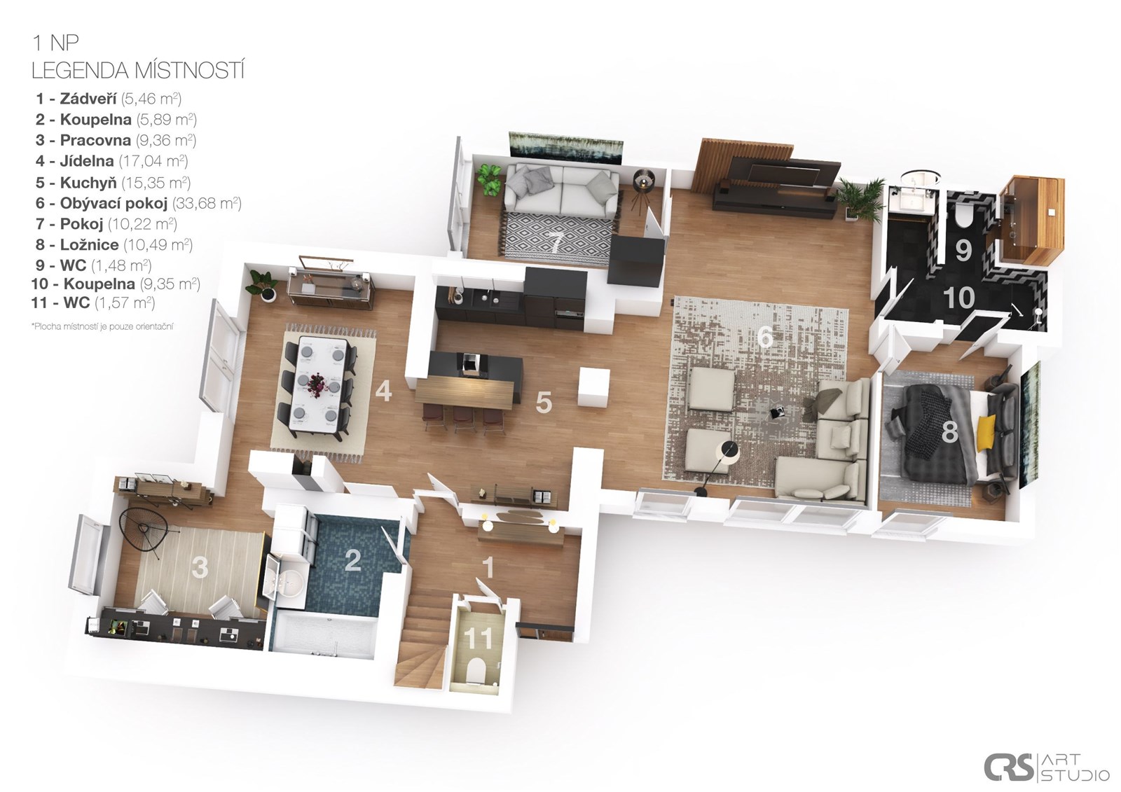 • Pracovna, další koupelna s vanou, samostatné WC a relaxační sauna