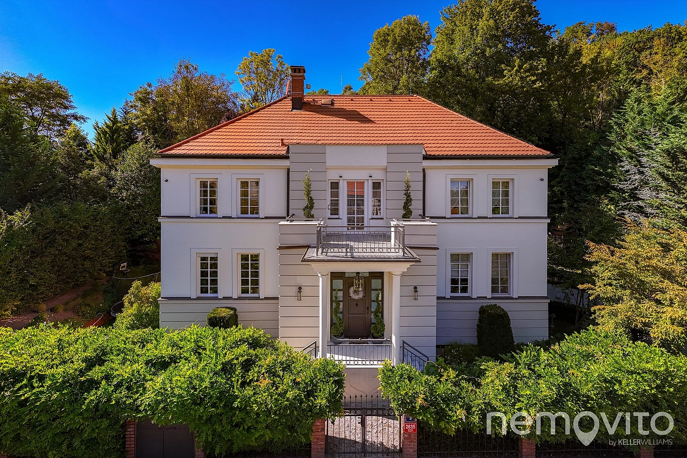 Reprezentativní vila z roku 2006 na jednom z nejúžasnějších míst hlavního města, kde vládne naprostý klid, přesto však jen zhruba 2 km na metro. V soukromé a zabezpečené ulici, kterou obklopuje zeleň Šáreckého údolí, stojí tato velkorysá stavba s vnitřním bazénem, wellness zázemím, a dvěma dalšími hlavními podlažími. Hlavní highlight tohoto domu však spočívá v neopakovatelné poloze, která poskytuje pravý a nefalšovaný klid. Díky své poloze, dispozici i reprezentativnímu charakteru je nemovitost ideální jak pro rodinné bydlení, tak jako rezidence pro ambasády či diplomatické mise.Dominantu domu tvoří velkorysý obývací pokoj, jehož plocha je v součtu téměř 100 m2, a který je vybaven několika francouzskými okny. Ty v rámci celého domu poskytují úžasné průhledy do zelené zahrady, která je pochopitelně řešena s ohledem na maximalizací soukromí. Útulnou atmosféru vytváří nejen velká okna, ale také masivní podlahy z amerického ořechu nebo celkově střídmé, avšak kvalitní pojetí interiérů. V obývacím pokoji nechybí krb a rozměrné okno na terasu za domem. Ta je díky terénnímu rozdílu zcela oddělena od sousední ulice, a není na ni vidět ani z bočních pohledů. Obývák poskytuje prostor pro rozměrnou pohovku a především skutečně nevídaně velkou jídelnu. Prostor pojme i desítku hostů. Kuchyně je bokem, je možné ji oddělit, a její plocha je 15 m2 s tvarem linky do U.V prvním podlaží domu je k dispozici rovněž část pro hosty nebo office (vlastní šatna, vlastní koupelna). Zastřešený vstup navazuje na vstupní zádveří, po němž následuje vstup do haly. Té dominuje krásné dřevěné schodiště s patinovým vzhledem. Druhé podlaží je tvořeno třemi ložnicemi. Master bedroom s en-suite koupelnou a volně stojící hydromasážní vanou, ke které dále náleží šatna, je pokoj o samostatné ploše 24 m2. Dětské pokoje (19 a 25 m2) jsou propojené koupelnou a velkou šatnou. Nad celým půdorysem domu je k dispozici prostorná půda, která pojme i několik dalších pokojů. Aktuální konfigurace je tak 5+kk.Úplně dole se mimo skladů, technického zázemí a garáže pro dvě auta nachází především vnitřní bazén s posilovnou a wellness. Bazén má na délku 8 metrů, k dispozici je parní lázeň, další toaleta i sprcha. Výstup je možný přímo na jižní terasu, která je ukrytá před sousedy. Dům je vybaven chytrou domácnosti Crestron, kamerami i alarmem. V místnostech je soustava podhledů s LED osvětlením, k dispozici je centrální vysavač, automatická závlaha a venkovní rolety. Vytápění je řešeno el. kotlem.Šárecké údolí je unikátní lokalitou, přičemž ulice leží bokem od silnici, a je ukryta před zraky veřejnosti. Nevídanou vlastností je dostupnost centra v řádu několika minut a dobrý spoj na letiště. Dům je skvěle situovaný také vůči nedalekým mezinárodním školám. Třešničkou na dortu jsou pak přírodní scenérie údolí, které nabízí nespočet příležitostí od rychlého ranního běhu až po celodenní výlet s přáteli. Pokud vás o domě zajímá více informací, rád vám pošlu odkaz na web domu s detaily.ENG:A representative villa (2006) in one of the most amazing places in the capital city, where there is stunning peace and quiet, yet only about 2 km to the metro. In a private and secure street surrounded by the greenery of the Sarecke valley, this generous building has an indoor pool and wellness facilities. The main highlight of this house lies in its unique location, which provides true peace and a top level security. Thanks to its setting and layout, the property is ideal both as a family residence and as an elegant home for embassies.The dominant feature of the house is the living room, whose area is almost 100 sqm in total, with several French windows. These provide amazing views of the green garden, which is designed with maximum privacy. The living room has a fireplace and an entrance to the terrace. Thanks to the terrain difference, it is completely separated from the neighboring street. The space can easily accommodate up to twenty guests.On the first floor there is also a quest room or an office (dressing room, bathroom). The hall is dominated by a beautiful wooden staircase. The master bedroom (24 sqm) with an en-suite bathroom and a free-standing bathtub also has a dressing room. The childrens rooms (19 and 25 sqm) are connected by a bathroom and a large dressing room. Above the entire floor plan of the house there is a spacious attic. The current layout offers a 4-bedroom villa with 3 bathrooms.At the very bottom there is an indoor swimming pool (8 m) with a gym, steam bath and wellness. It is possible to exit directly to the southern terrace. The house is equipped with a Crestron system and cameras. Sarecke valley is a unique location, with the street lying to the side of the road and hidden from public view. An unprecedented feature is the accessibility of the center within a few minutes and a good connection to the airport. The house is also perfectly located for ne