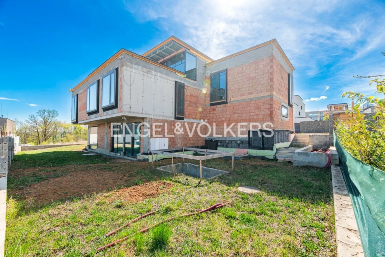 Vila je navržena s důrazem na klidný a vyvážený prostor, výhledy a světlo a poskytuje jedinečný zážitek z bydlení. Její dispozice je řešena s důrazem na praktičnost, bezpečnost a přináší chytré řešení pro ty, kdo hledají pohodlný, moderní a bezpečný domov.Vila je před dokončením, s důrazem na moderní a kvalitní technologie (umístění fotovoltaiky na střeše, která je navržena jako ostrovní (off-grid), větrání s rekuperací, podlahové vytápění, stropní chlazení atp.) a s ohledem na energetickou nenáročnost. Na pozemku je vydatný vrt, který poskytuje dostatek vody spolu s projektem na úpravu této vody.K dispozici je veškerá dokumentace včetně návrhu interiéru, projektu zahrady a projektu k jednotlivým technologiím (elektro, větrání, chlazení atp.).Nabízena je ve fázi hrubé stavby s kvalitními hliníkovými okny Schüco splňujícími vysoké bezpečnostní standardy, hotovou střechou včetně izolací nejvyšší třídy a finální izolační vrstvou nejvyšší kvality, dále s veškerou projektovou a prováděcí dokumentací, studií interiéru a platným stavebním povolením, což budoucím majitelům nabízí jedinečnou příležitost přizpůsobit interiér a exteriér vlastním představám a potřebám.Okamžité pokračování výstavby díky platnému stavebnímu povolení a kompletní dokumentaci. Vilu lze dokončit během 6 – 9 měsíců od podpisu smlouvy s realizační firmou. Odhad nákladů na dokončení vily v závislosti na standardu se pohybuje v rozmezí 12 – 30 milionů Kč.