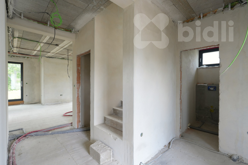 V současnosti je vila v této fázi výstavby - dokončené stavební práce mimo podlahy, stropů a topení, chytrá elektroinstalace LOXONE, rozvody vody, vchodové dveře a vrata, příprava na venkovní žaluzie.