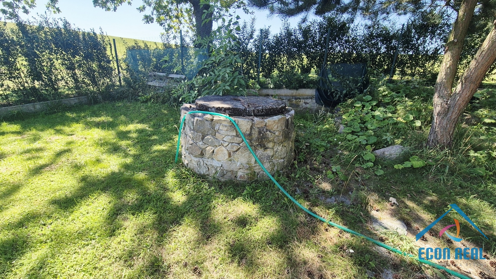 Na pozemku jsou 2 vlastní studny - na pitnou i užitkovou vodu. Na pozemku je též vodovodní přípojka s vodoměrem (aktuálně nezavedená do domu).