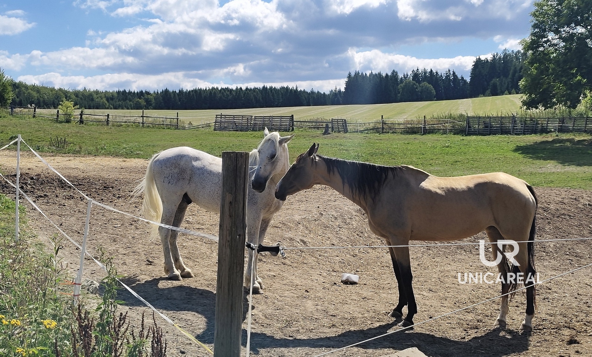 Ve výhradním zastoupení nabízíme k prodeji původní zemědělskou usedlost v obci Kamenná Horka, která díky svému umístění, dispozici a velikosti pozemků (10.137m2) nabízí nespočet možností využití od bydlení přes rekreaci až po komerční činnost (agroturistika, zemědělství, chov zvířat...).Nedaleké okrasní město Svitavy zajišťuje dostupnost veškeré občanské vybavenosti, pracovních příležitostí i případných klientů. Naopak okolí s lesy, loukami a turistickými atrakcemi nabízí spousty sportovního a rekreačního vyžití (cyklistika, plavání, vyjížďky na koních, houbaření, výlety atd...).Samostatně stojící rodinný dům (bývalá zemědělská usedlost z roku 1820) se nachází ve východní části obce, po pravé straně silnice.Jižní část je obytná, sestávající se ze dvou bytových jednotek 3+1 a 4+KK s příslušenstvím, severní část je hospodářská. Obě části pak spojuje vnitřní dvůr. Obytná část je dvoupodlažní, částečně podsklepená bez využitého podkroví. Hospodářská část je jednopodlažní, nepodsklepená s prostory pro chov hospodářských zvířat (koní).Poslední větší rekonstrukce proběhla v roce 2006 (plastová okna, úpravy interiérů) a v roce 2022 (nová střecha) nad celým objektem.Zdivo smíšené (kámen a pálená cihla), elektřina 220/380V, kanalizace - septik s přepadem, vodovod obecní + vlastní studna, vytápění - ústřední kotlem na tuhá paliva s radiátory + lokální krbová kamna, střecha sedlová s novou plechovou krytinou, plastová okna, obytná část je zateplena. DISPOZICE:Bytová jednotka 4+1 v I. nadzemním podlaží (138m2):- chodba 15,9m2- pokoj 20,4m2- pokoj 15,45m2- pokoj 17,85m2- pokoj 23,45m2- kuchyň 20,10m2- koupelna 6,45m2- WC 1,40m2- spíž 1,75m2- veranda 16m2Bytová jednotka 4+KK v II. nadzemním podlaží (135,20m2):- chodba 18,95m2- pokoj 15,25m2- pokoj 16,75m2- pokoj 16,65m2- kuchyně s jídelnou 42,60m2- koupelna 9,70m2- WC 2,20m2- šatna 5,15m2- technická místnost 7,95m24 venkovní dřevěné boxy pro koně + 7 vnitřních. Venkovní jízdárnaPůdaDvůrZahradaVýběhy pro koněSoučástí jsou rozsáhlé, na sebe navazující pozemky (trvalý tavní porost + zahrada) sloužící v současné době pro chov koní a dle územního plánu se nacházejí v zastavitelné oblasti. Pozemky jsou rovinaté až mírně svažité, z jedné strany hraničí s obecní komunikací a z druhé strany přecházejí v louky a následně lesy Národní přírodní rezervace Rohová.Nemovitost se prodává včetně věcného břemene - služebnost užívacího práva pro jednu osobu. Možnost vyplacení.Kamenná Horka (německy Hermersdorf) je obec v okrese Svitavy, rozkládající se po obou stranách historické česko-moravské zemské hranice asi 6 km jihovýchodně od centra Svitav a 11km od Moravské Třebové. Jedná se o typickou, z východu na západ asi 4 km dlouhou, lesní lánovou ves v oblasti tzv. Hřebečska, tedy v území od 13. století do roku 1945 obývaného převážně Němci. Dnes je součástí Mikroregionu Svitavsko. Žije zde 357 obyvatel. Dominantou obce je gotický kostel sv. Máří Magdaleny, poprvé zmiňovaný ve 14. století. V roce 1749 byl barokně přestavěn.