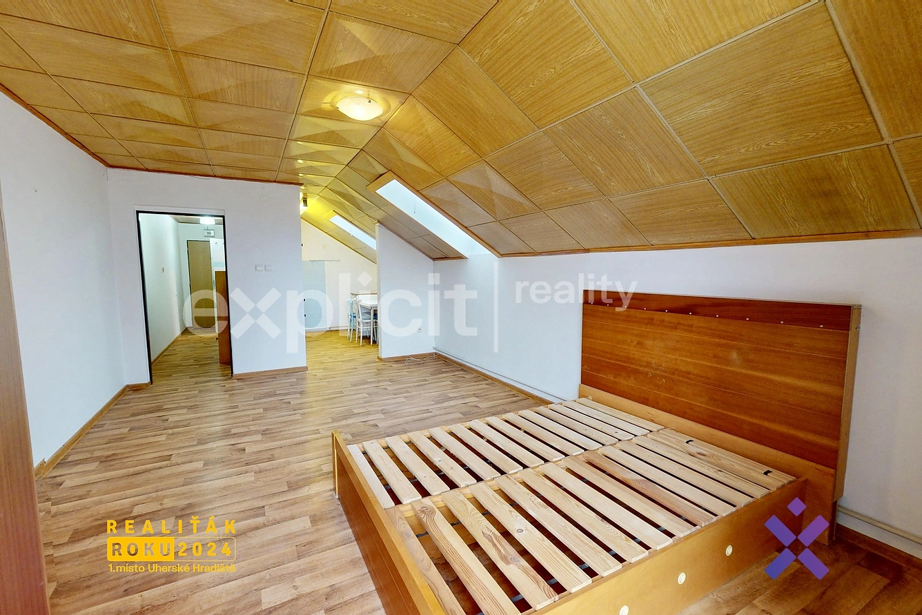 Byt 1+1 s balkonem a vlastním parkováním v Bezručově čtvrti v Bojkovicích je nyní k pronájmu a nabízí útulné, klidné a praktické bydlení v příjemné lokalitě s výbornou dostupností. Podkrovní prostor působí hřejivě a vzdušně, je ideální pro jednotlivce, pár nebo jako startovací bydlení.- dispozice 1+1, celková užitná plocha 48 m2- obytné místnosti 39 m2- balkon 4,5 m2, sklep 4,3 m2 (zděný, prostorný)- balkon a obývací část orientovány na východ – příjemní ranní světlo- podkrovní byt ve 4. podlaží (bez výtahu)- cihlová stavba, rok výstavby a kolaudace 2000- společné prostory kočárkárna, kolárna, prádelna, sušárna- vlastní parkovací stání přímo před domem- tichá ulice s rodinným charakterem- vynikající dostupnost vlak, autobus, silniční napojení- kompletní občanská vybavenost v pěší vzdálenosti – obchod Hruška, pošta, lékař, lékárna, škola, školka, hřiště, restaurace, cukrářství, hostinec, veterina, bankomat- okna plastová balkónová + dřevěná střešní- kuchyně funkční stav- koupelna a WC původní, funkční- měsíční náklady: elektřina 800 Kč, plyn 900 Kč, voda 500 Kč- elektřina a plyn bude přepsána na nájemce- kauce ve výši jednoho nájmu a energií a provize ve výši jednoho nájmu a energiíLíbí se Vám tato nemovitost? Potkejme se osobně na místě, co Vy na to? Zavolejte mi nebo napište a já Vám sdělím veškeré detaily do poslední cihly.Chtěli byste, abych i Vás zastupoval při pronájmu nebo prodeji? Stačí mi napsat, jsem tu pro Vás kdekoli a kdykoli.Těším se na Vás :)Hladiš - Reality