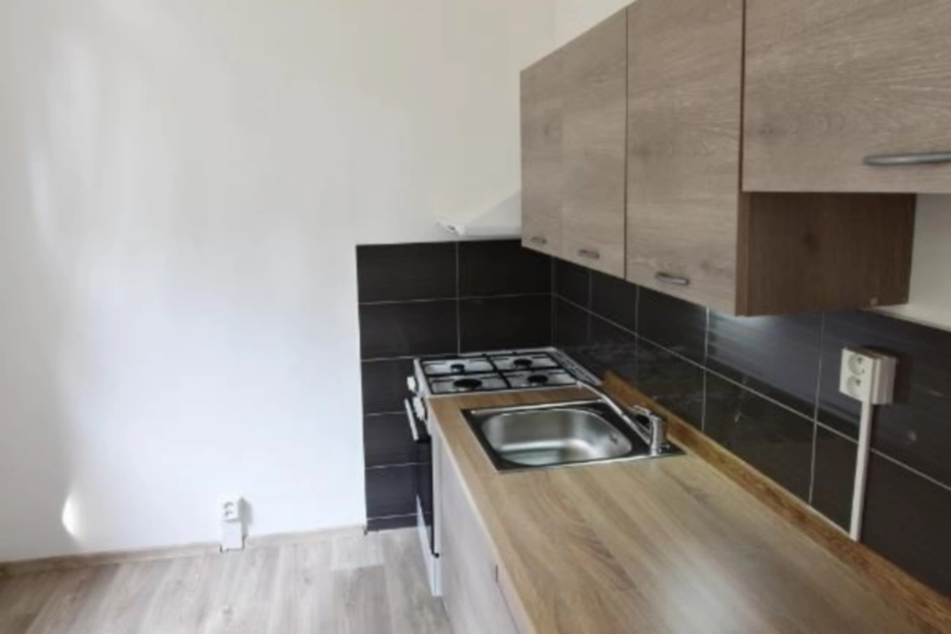 Je zde kuchyňská linka, plynový sporák, vana s umyvadlem a WC. Na podlahách je položeno lino. Byt je volný k nastěhování IHNED.