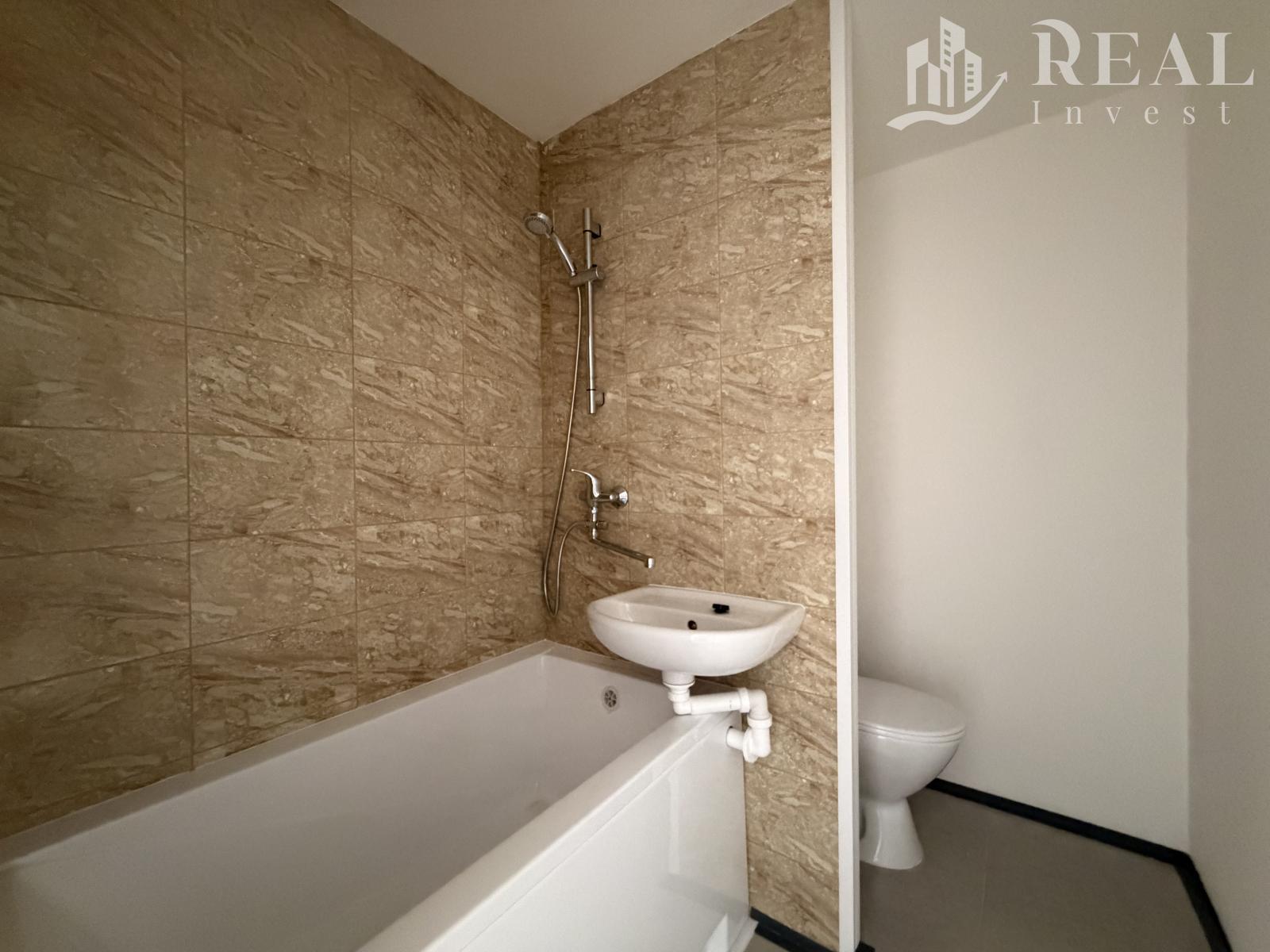 Byt je po celkové rekonstrukci a je připraven k nastěhování. Dispozice zahrnuje kuchyň, obývací pokoj, koupelnu s vanou a toaletou.