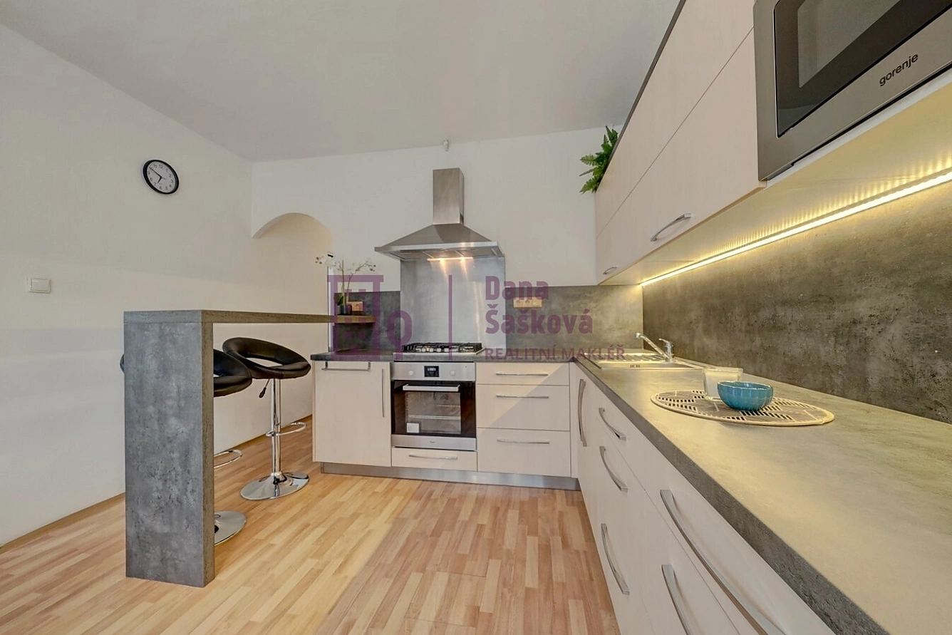 Byt je téměř plně vybaven - pračka, elektrická trouba, plynová varná deska, pohovka, postel, skříně, konferenční a jídelní stůl, sezení na terasu.