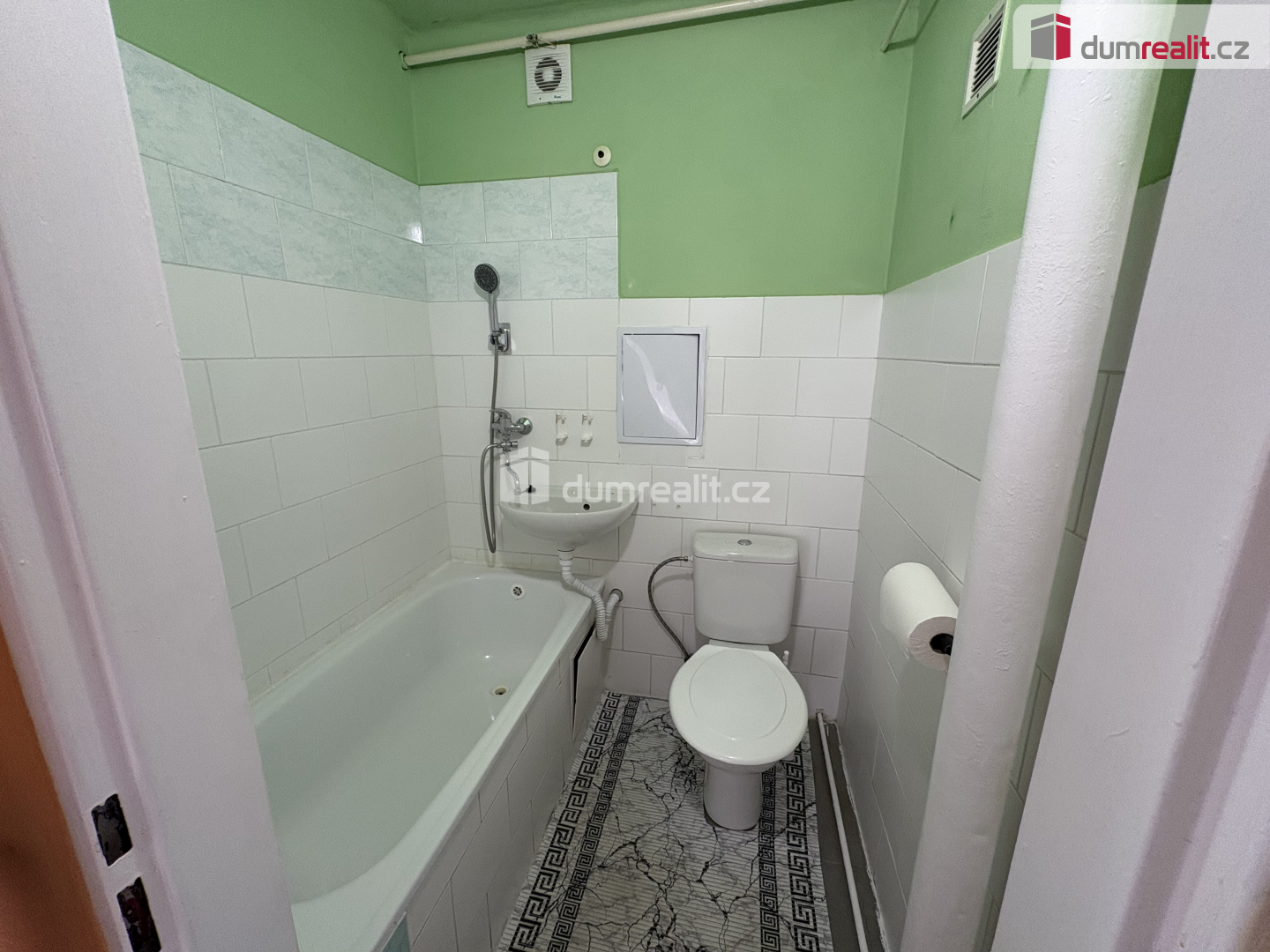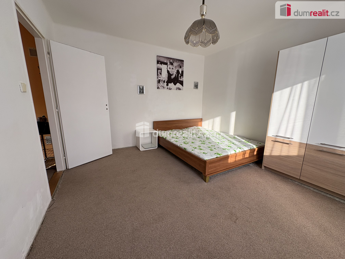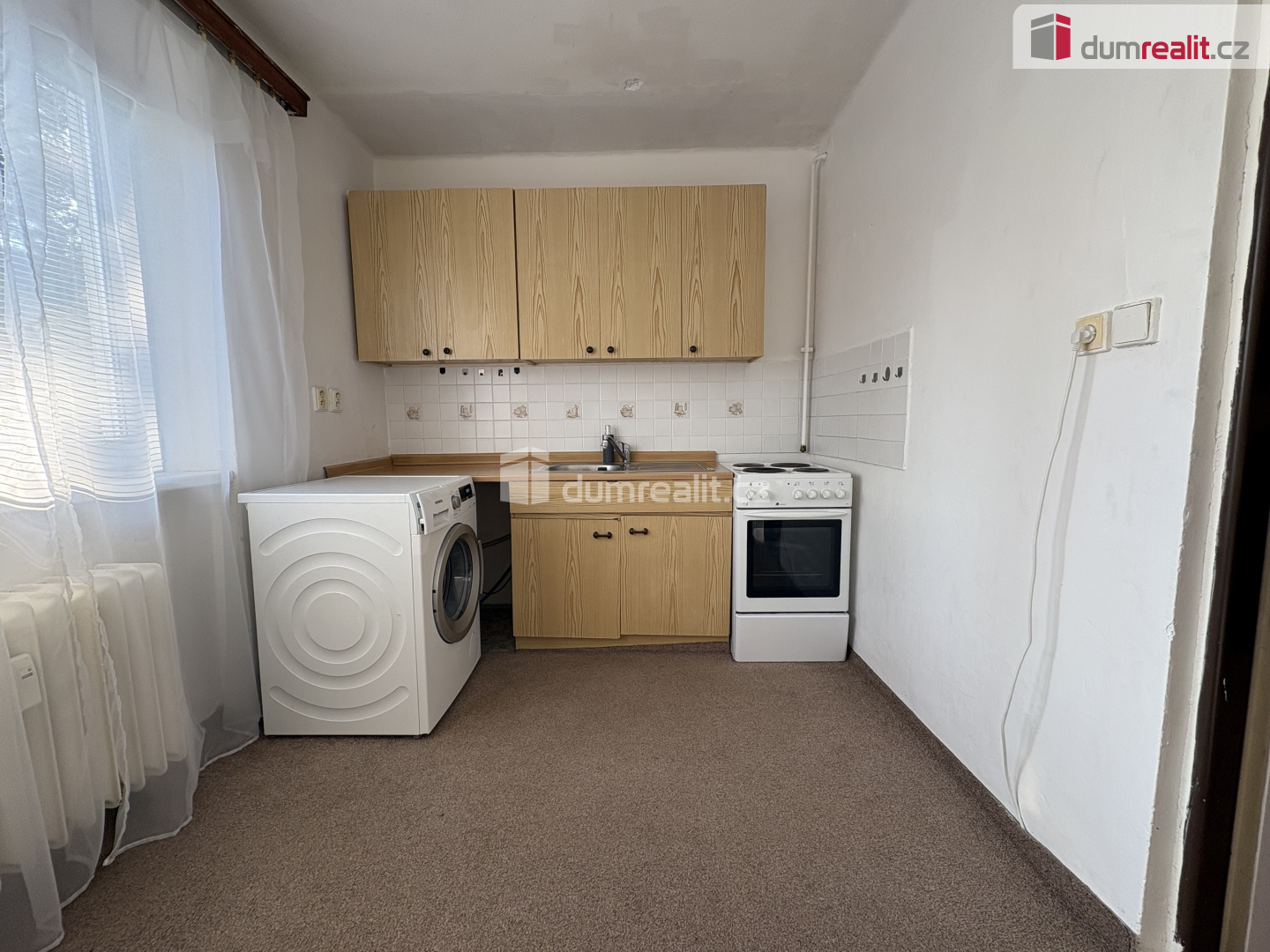 Při vstupu do bytu je po pravé straně koupelna se vanou a WC. Na proti je kuchyň, kde se nachází kuchyňská linka s elektrickým sporákem, pračka, lednice a stůl se židlemi. V samostatném pokoji je manželská postel a skříň. V bytě jsou plastová okna, topení a ohřev vody je dálkově.
