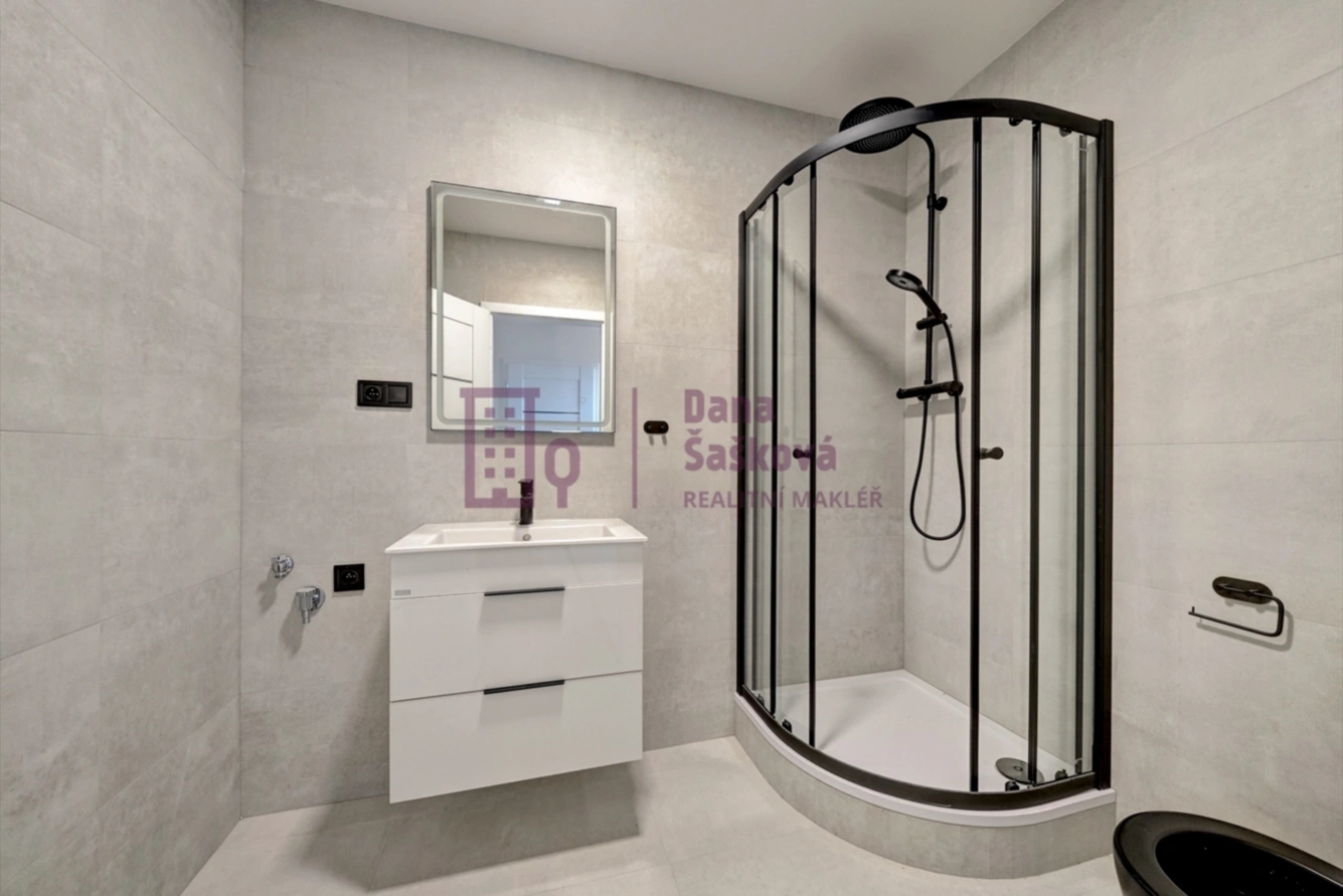Dispozice 1+1 nabízí předsíň, chodbu, koupelnu se sprchovým koutem a toaletou, kuchyni a pokoj, celková výměra 43 m2.