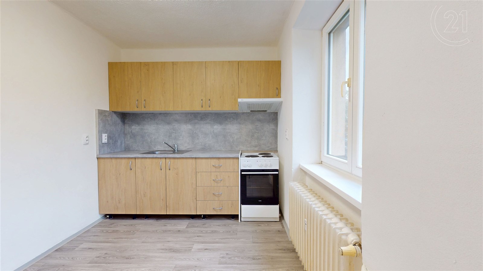Kuchyň je vybavena novou kuchyňskou linkou, nechybí elektrická plotýnka na vaření ani prostor pro jídelní stůl.