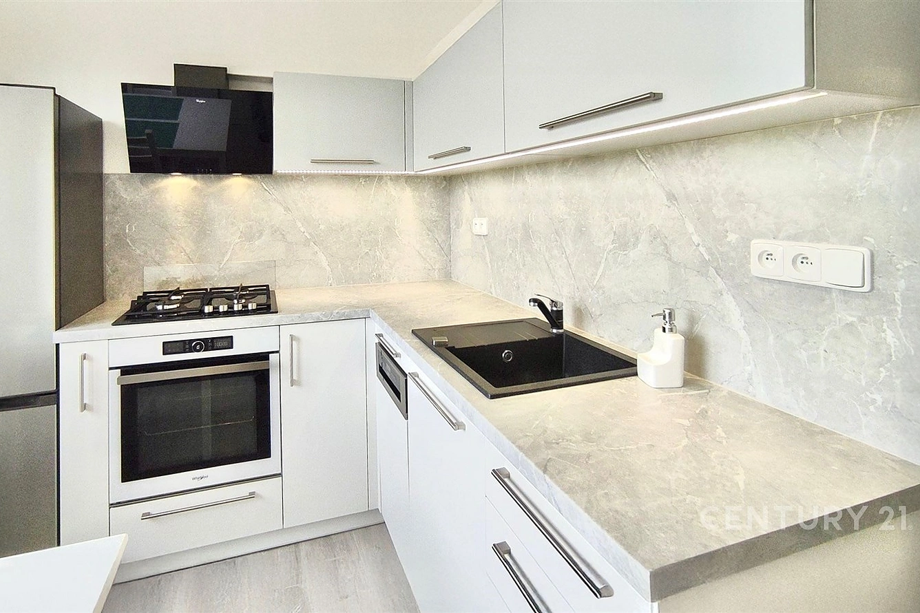 Byt prošel zdařilou rekonstrukcí a nabízí moderní, útulné a praktické řešení. Součástí je kompletně vybavená kuchyňská linka se spotřebiči – elektrickou troubou s plynovou varnou deskou, digestoří, lednicí s mrazákem a myčkou