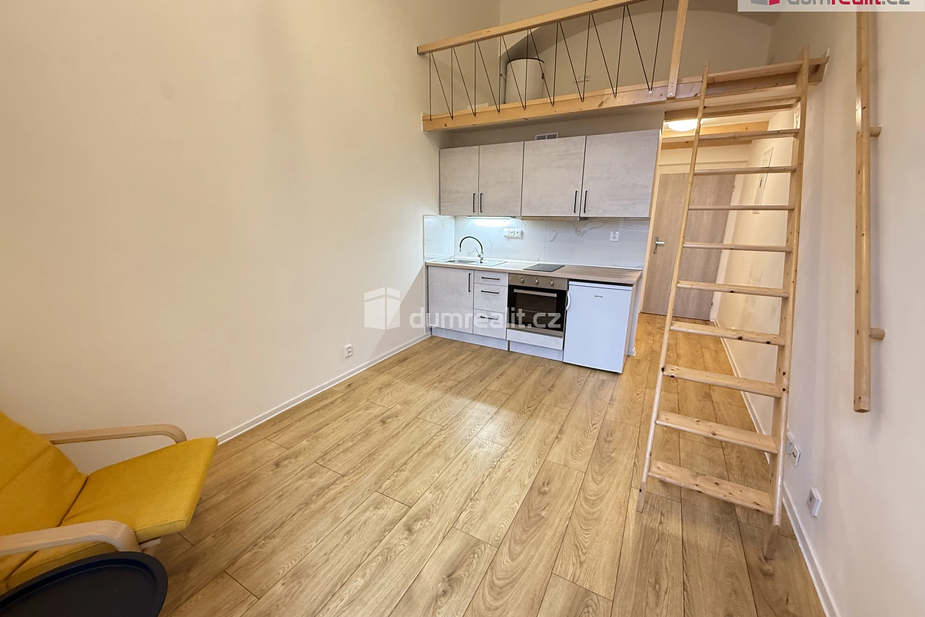 Dumrealit.cz Vám zprostředkuje možný pronájem bytu 1+1 35 m2 P5 Smíchov. Jedná se o zcela nový byt po kompletní rekonstrukci v kompletně zrevitalizovaném domě na pražském Smíchově. Vstup do neoddělené předsíně, odkud se vchází do koupelny, která je vybavena pračkou, sprchovým koutem, umyvadlem a toaletou. Dále vstup do hlavní místnosti, která je vybavena novou kuchyňskou linkou vyrobenou na míru od firmy gorenje, která je vybavena indukční varnou deskou, troubou a lednicí s mrazákem. Na podlahách je kvalitní plovoucí podlaha v imitaci dřeva. Byt je velmi světly a prostorný díky vysokým stropům a velkému oknu, vstup po schodech do horního patra, které je přizpůsobeno na spaní. Byt je orientovaný do zahrady domu. Hlavní místnost je vybavená křeslem a konferenčním stolkem. Byt disponuje ještě velkou místností, který je vhodná jako šatna, hostinský pokoj či pracovna. Topení je řešeno elektrickými přímotopy. V pěší vzdálenosti se nachází metro Anděl, tramvajová zastávka, autobusová zastávka s přímým spojem na letiště. Poblíž domu pětihvězdičkové obchodní centrum Nový Smíchov, náplavka, Manifesto Market a další... Skvělá příležitost komfortního bydlení v centru města s duchem prostorného bytu, kde jsou použity kvalitní přírodní materiály. Ev. číslo: 653172. Bližší informace Vám sdělí Bc. Roman Šittich, 721 181 818, r.sittich@dumrealit.cz
