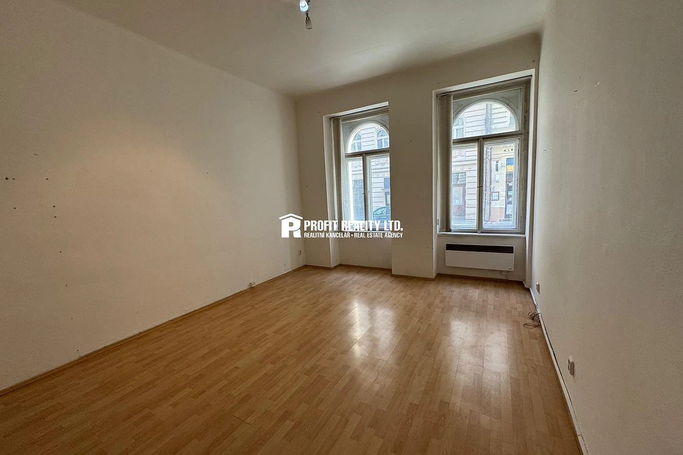 K pronájmu byt o velikosti 1+1, 48m2, umístěný v 1. NP činžovního domu v historickém centru Prahy. Byt se skládá z pokoje orientovaného na východ do ulice, kuchyně orientované na západ do vnitrobloku, koupelny s wc a předsíně. Byt je zařízený kuchyňskou linkou, plovoucí podlahy, v koupelně dlažba, sprchovací kout.Dobrá dopravní dostupnost, zastávka tramvaje Národní divadlo a Myslíkova, metro Národní třída. Byt je volný ihned, elekřina se převádí na nájemce, kauce a provize je ve výši nájmu.