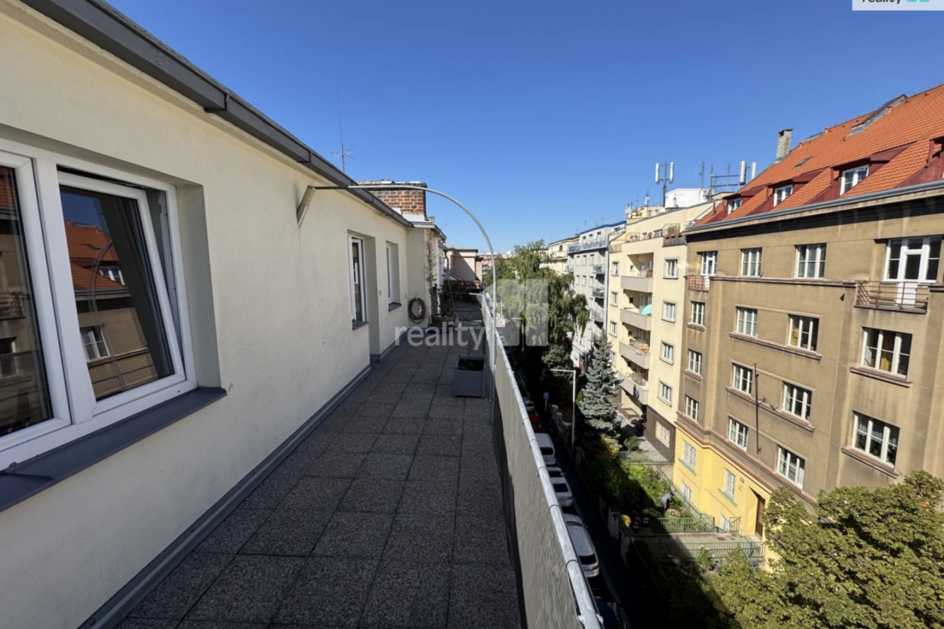 Reality 11 Vám zprostředkují pronájem slunného bytu 1+1 s velikou terasou (20 m2), situovaného ve 4. patře menšího bytového domu bez výtahu, nedaleko stanice metra A - Želivského, v klidné ulici, s příjemným výhledem a dostatkem světla.