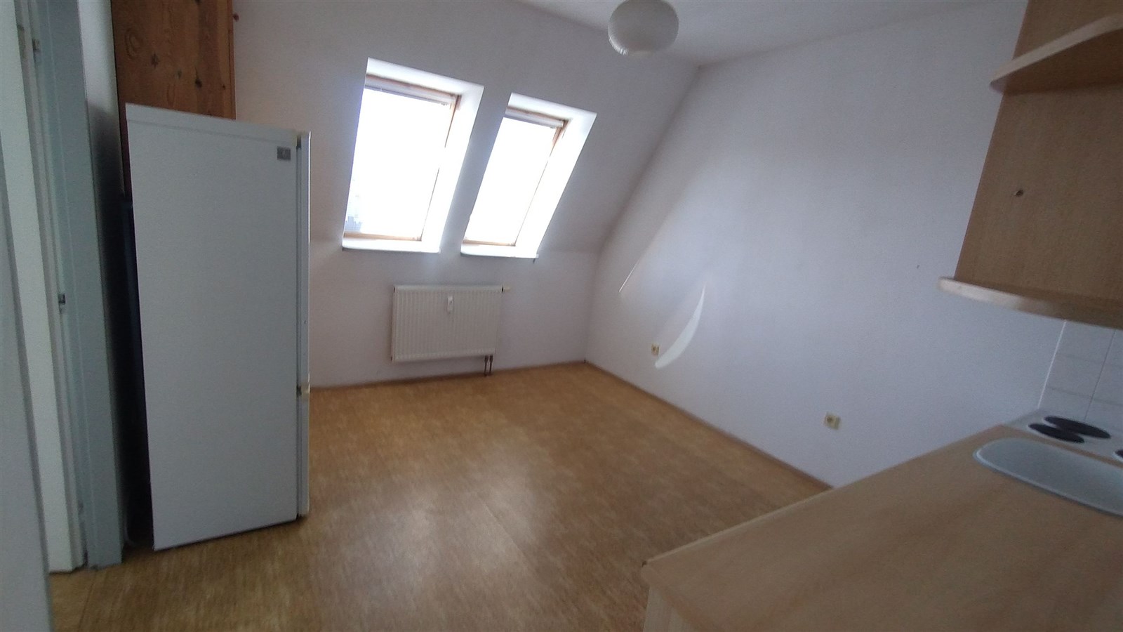 Pronájem bytu 1+1 ve Strakonicích, v Luční ulici. Byt se nachází v pátém nadzemním podlaží bytového domu. Jedná se o půdní nástavbu. Skládá se z jednoho pokoje, kuchyně a koupelny s WC.