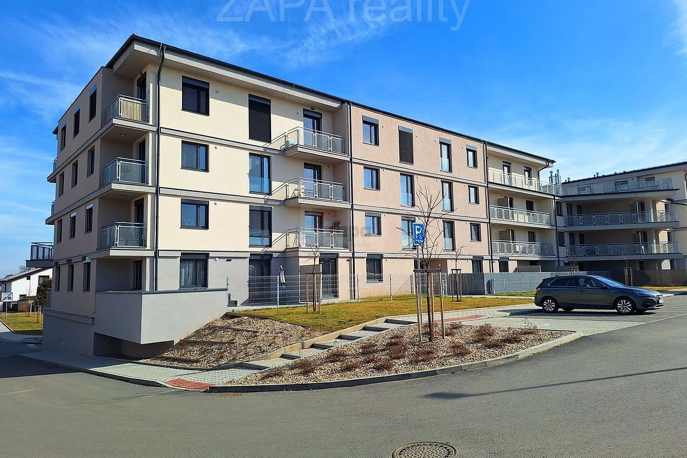 Byt se nachází ve 4. patře s výtahem, je vybaven novou kuch. linkou s vestavěnými spotřebiči (el. a mikrovlnná trouba, sklokeramická varná deska, myčka, lednice s mrazákem) a pračkou, jinak je byt nezařízený. V koupelně je sprchový kout a WC, na podlahách je plovoucí podlaha nebo dalžba, okna mají el. předokenní žaluzie, v bytě kabel pro internet. K bytu náleží zděný sklep v přízemí domu.