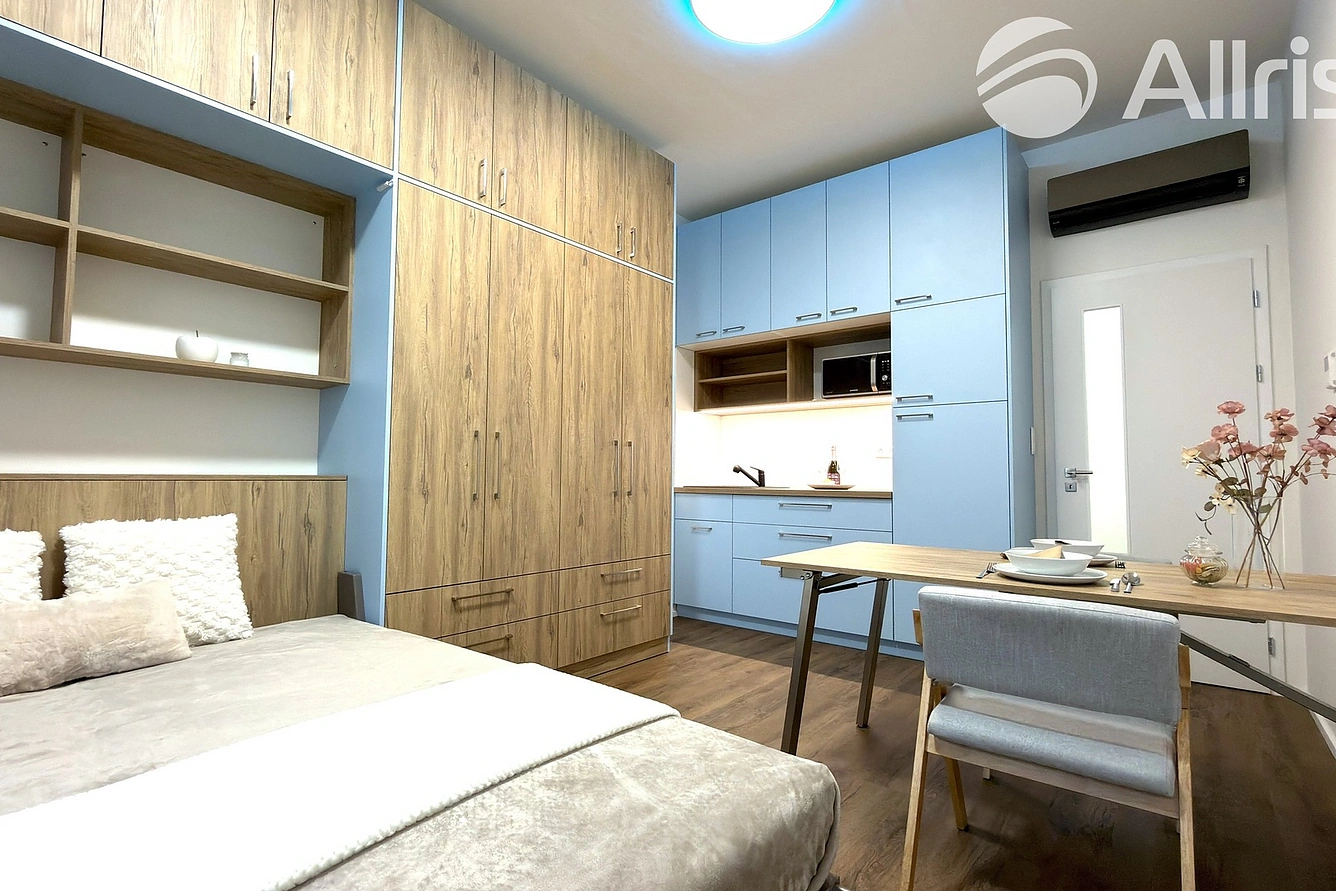 Nabízená nemovitost je umístěna na strategickém místě nedaleko centra Brna s plnou občanskou vybaveností, ulice Komárovská.Ateliér se nachází ve 4. nadzemním podlaží výjimečného komplexu Allrisk MERIDIEM. Jedná se o novostavbu s vysokým standardem provedení (klimatizace, venkovní elektricky ovládané žaluzie). Přístup je bezbariérový, včetně výtahu. Vybavení:– kuchyňská linka včetně lednice, mikr. trouby, mobilní indukční plotýnky a digestoře– na míru dělaná šatní stěna včetně skládací postele a skládacího prostorného stolu + dvě židličky. – pračkaMěsíčně hradíte: nájemné 21.175 Kč vč. DPH + poplatky 1.140 Kč za 1 osobu (studená voda, el. spol prostor, výtah, úklid, teplá voda, teplo) + internet + elektřina. Majiteli hradíte vratnou jistotu ve výši 42.000 Kč. Provize za zprostředkování nájmu je 17.500 Kč + DPH. Pokud jste si nevybrali z uveřejněné nabídky, zadejte nám prosím Vaši poptávku a my se pokusíme najít odpovídající nemovitost.