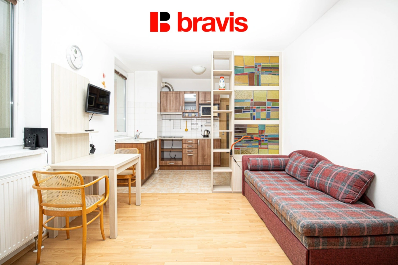 Ve výhradním zastoupení majitele nabízíme k dlouhodobému pronájmu byt o dispozici 1+kk v městské části Brno - Komín na ulici Absolonova.Byt o výměře 34,3 m2 se nachází ve 2. nadzemním podlaží cihlového domu s výtahem.Kuchyňská část pokoje je vybavena linkou včetně lednice, varné desky a mikrovlnné trouby. Dále se zde nachází jídelní stůl se židlemi.Obývací část pokoje nabízí rozkládací válendu, televizi a úložné prostory. Z pokoje vede vstup na prostorný balkon o výměře 7,44 m2 s orientací do klidné ulice a parku.Zařízení koupelny tvoří vana, umyvadlo, toaleta a přípojka na pračku.V bytě se dále nachází komora, ve které jsou regály.Možnost připojení internetu a TV.Vytápění bytu a ohřev vody je zajištěno vlastním plynovým kotlem.Parkovaní ve dvoře bez poplatku.Brno – Komín je vyhledávaná klidná městská část s výbornou dostupností do centra, na dálnice a brněnský okruh. V blízkosti městské části je Brněnská přehrada a množství cyklostezek i turistických tras – ideální pro aktivní odpočinek i život.V okolí domu je přístupné MHD - trolejbus 30,36, autobus 44,84,67 a tramvaj 1,3,10. Dále jsou zde i obchody, restaurace, kavárny a další.Prohlídka je možná kdykoliv po domluvě s uvedeným makléřem.Možnost zajištění jednorázového či pravidelného úklidu naší úklidovou firmou.S ohledem na legislativní požadavek jeho zveřejnění, musí být nemovitost označena v en. třídě "G", což ovšem neznamená, že do této en. třídy opravdu patří.