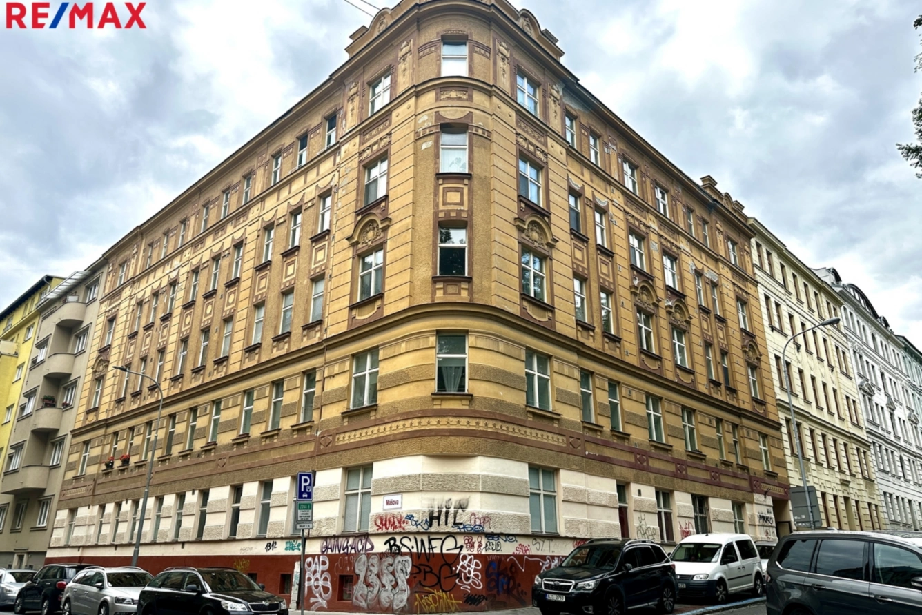 Nabízíme k pronájmu útulný a světlý byt 1+1 o celkové ploše 36 m², který se nachází ve 2. patře cihlového domu s novým výtahem v Brně na ulici Antonínská. Kuchyňský kout je umístěn v chodbě, takže celá obytná místnost zůstává volná k využití podle potřeb nájemníka. Díky světlému pokoji s vysokými stropy o výšce 3,1 m existuje možnost vybudovat spací patro a tím výrazně zvýšit využitelnou plochu.