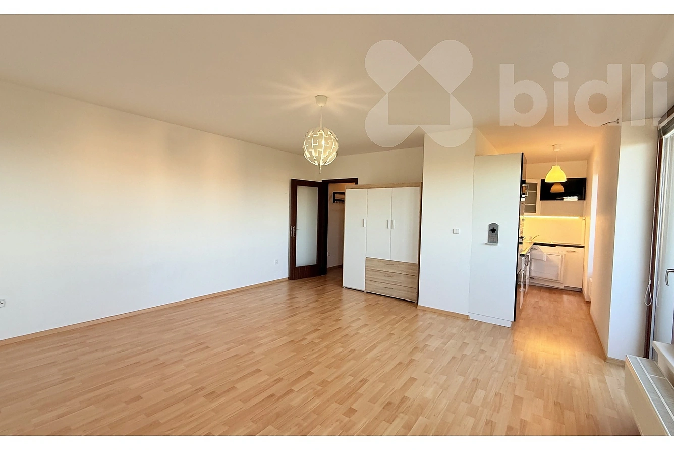 Byt je částečně zařízený (skříně, stolek pod TV).