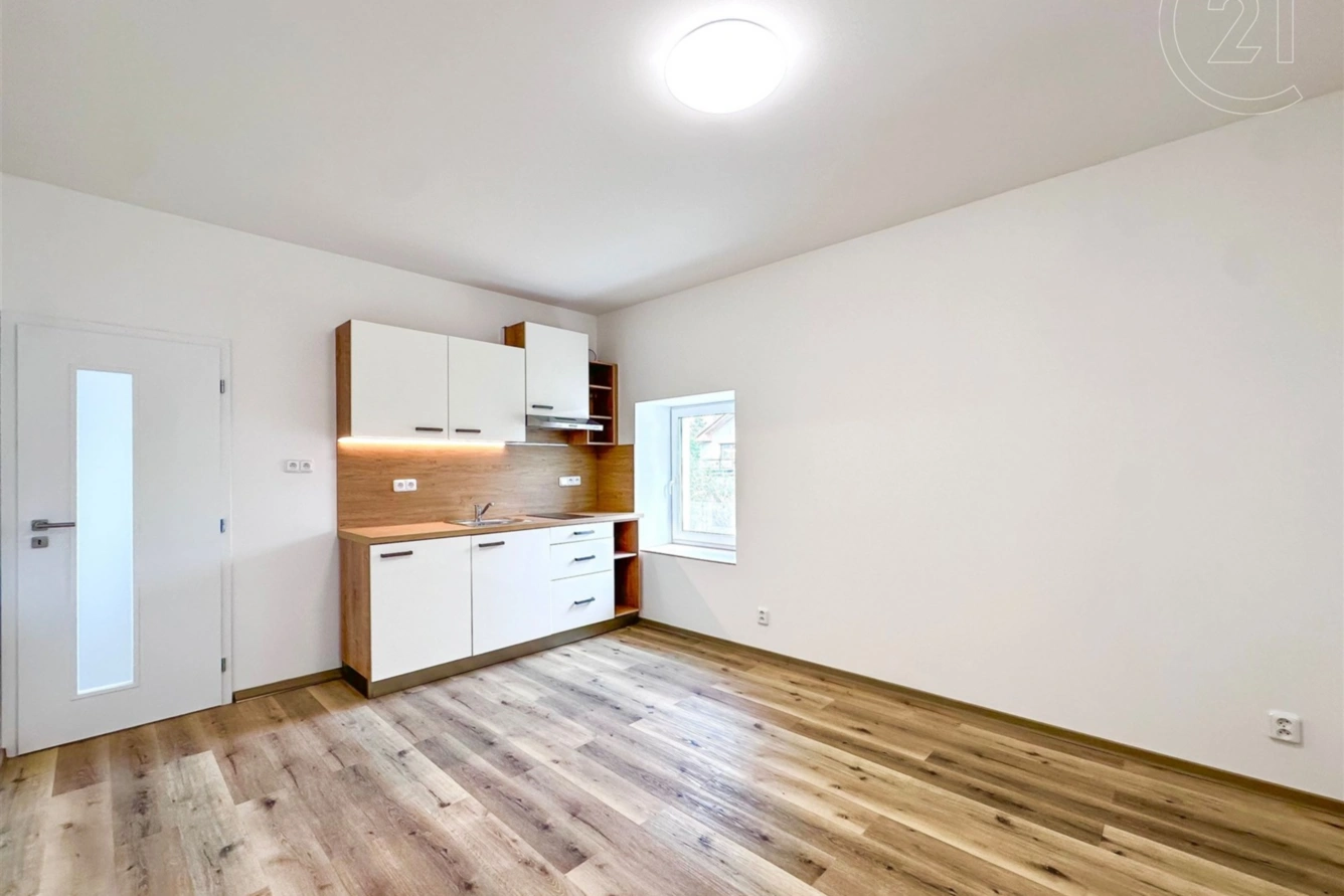 Prostor má velmi příjemnou atmosféru – hlavní obytná místnost je propojena s moderní kuchyní vybavenou vestavěnými spotřebiči, podsvícením a dostatkem úložných prostor. Zbytek místnosti poskytuje pohodlí pro obývací i odpočinkovou část. Charakter prostoru doplňují dvě okna s útulným okenním výklenkem, která přinášejí dostatek světla a vytvářejí ideální místo pro relaxaci s knihou nebo šálkem kávy.