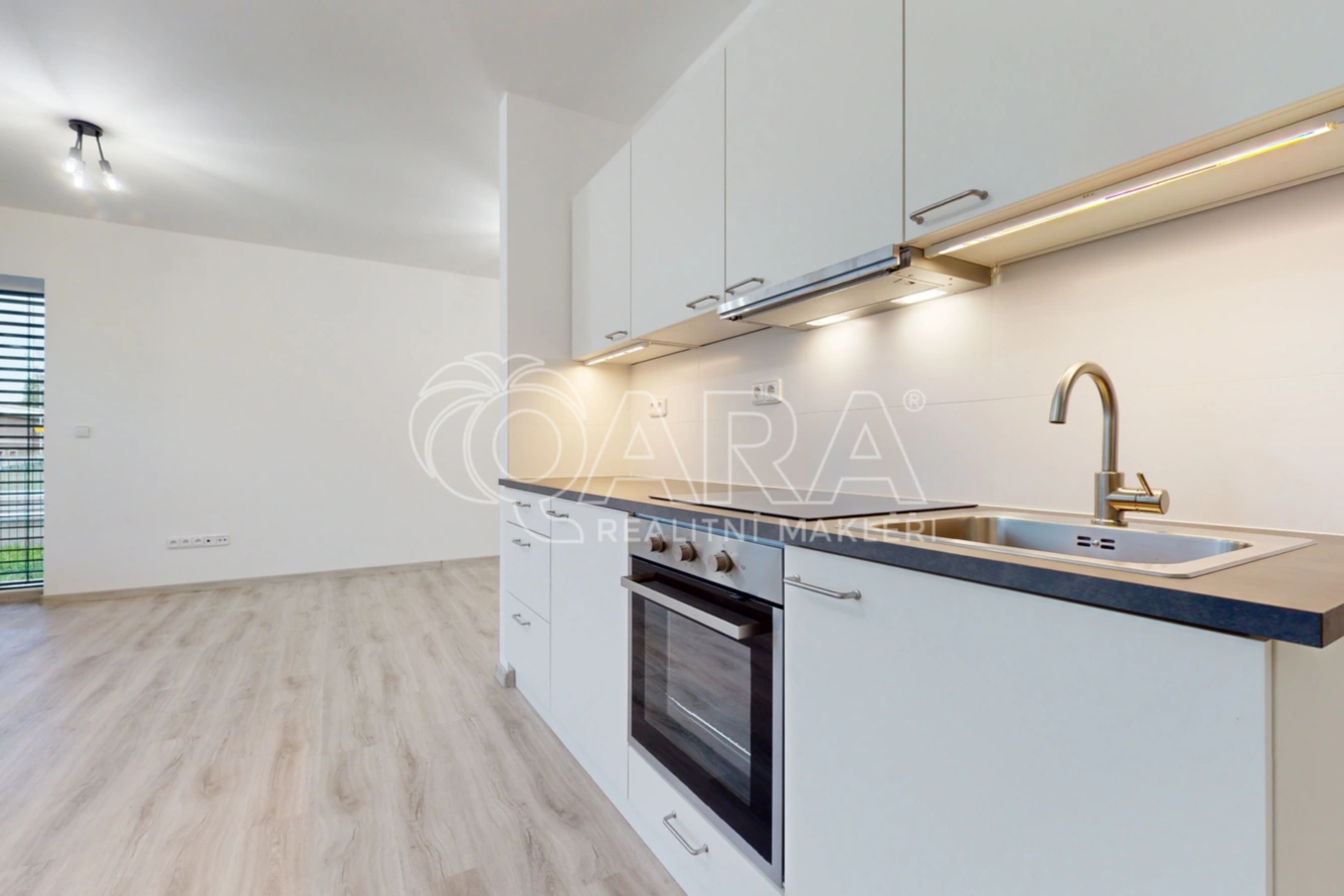 Tento světlý byt o podlahové ploše 39,5 m² (plus terasa cca 36 m²) se nachází ve prvním podlaží novostavby moderního cihlového nízkoenergetického domu s bezbariérovým vstupem. Nemovitost je vybavena novou kuchyňskou linkou s vestavěnými spotřebiči (trouba, indukční deska, lednice, odsavač par).