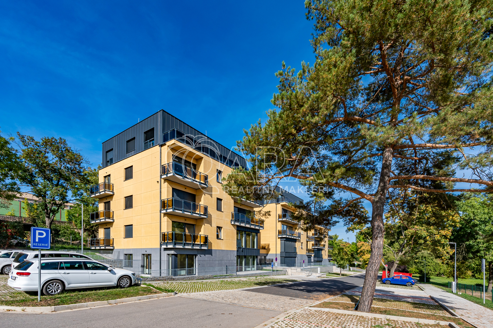 Byt je orientován na jihovýchod a východ, což zaručuje optimální osvětlení a příjemné prostředí po celý den. Z terasy je krásný výhled do zeleně okolního parku, který dům obklopuje. Byt je součástí moderního nízkoenergetického bytového domu. S energetickou třídou C je tento byt úsporný, což garantuje nízké náklady na energie.