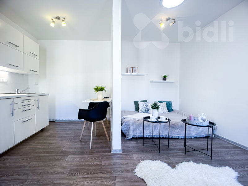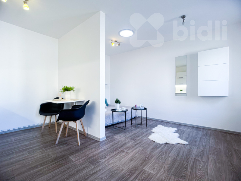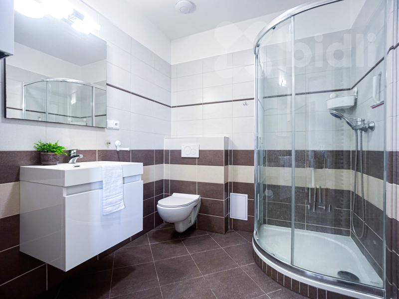 Tento byt nabízí prosvětlený obývací pokoj s kuchyňským koutem, který je ideálním prostorem jak pro každodenní život, tak pro práci z domova. Kvalitní materiály a moderní povrchy nejen zajišťují estetický dojem, ale také garantují dlouhou životnost a nízké nároky na údržbu.