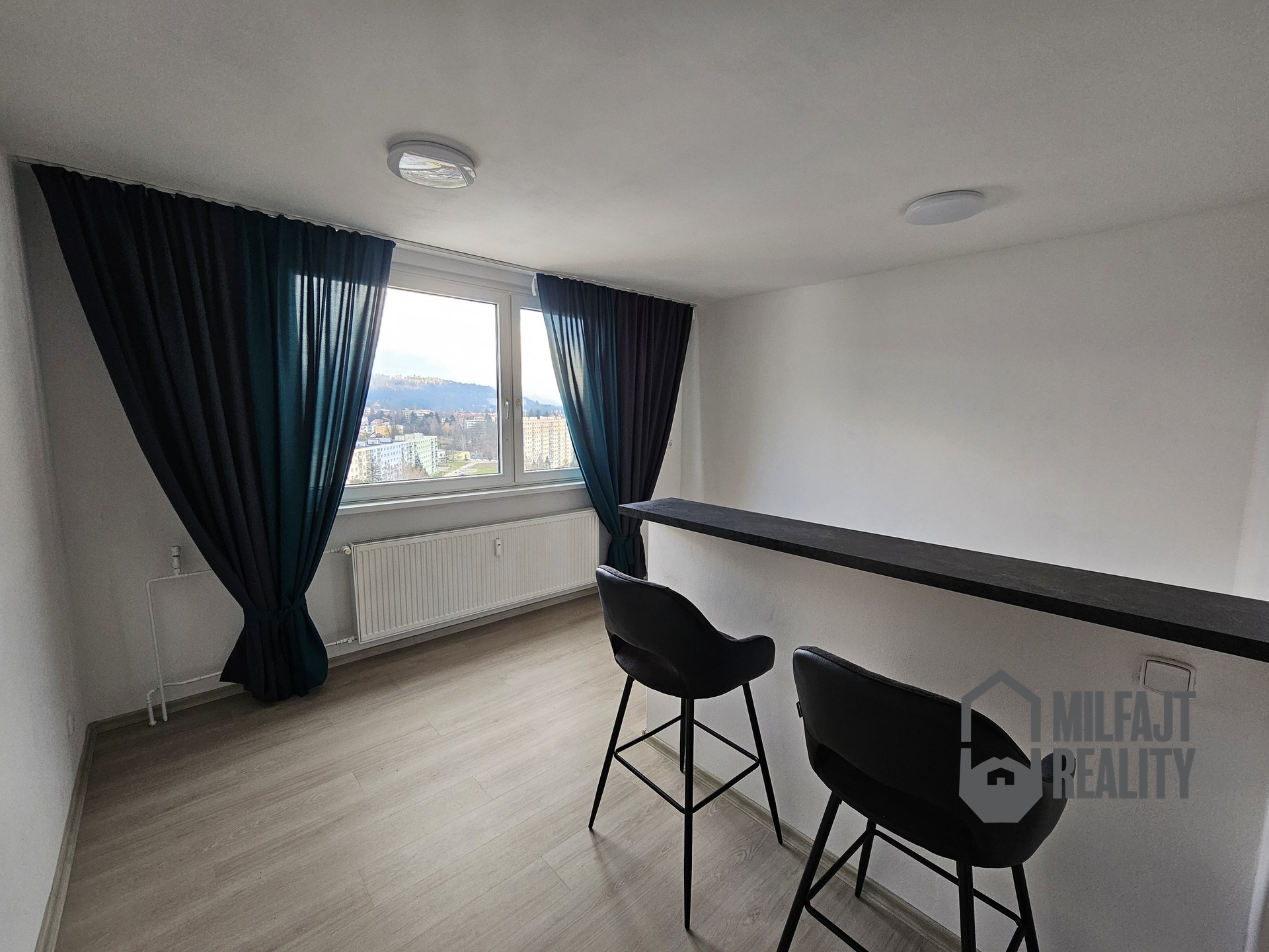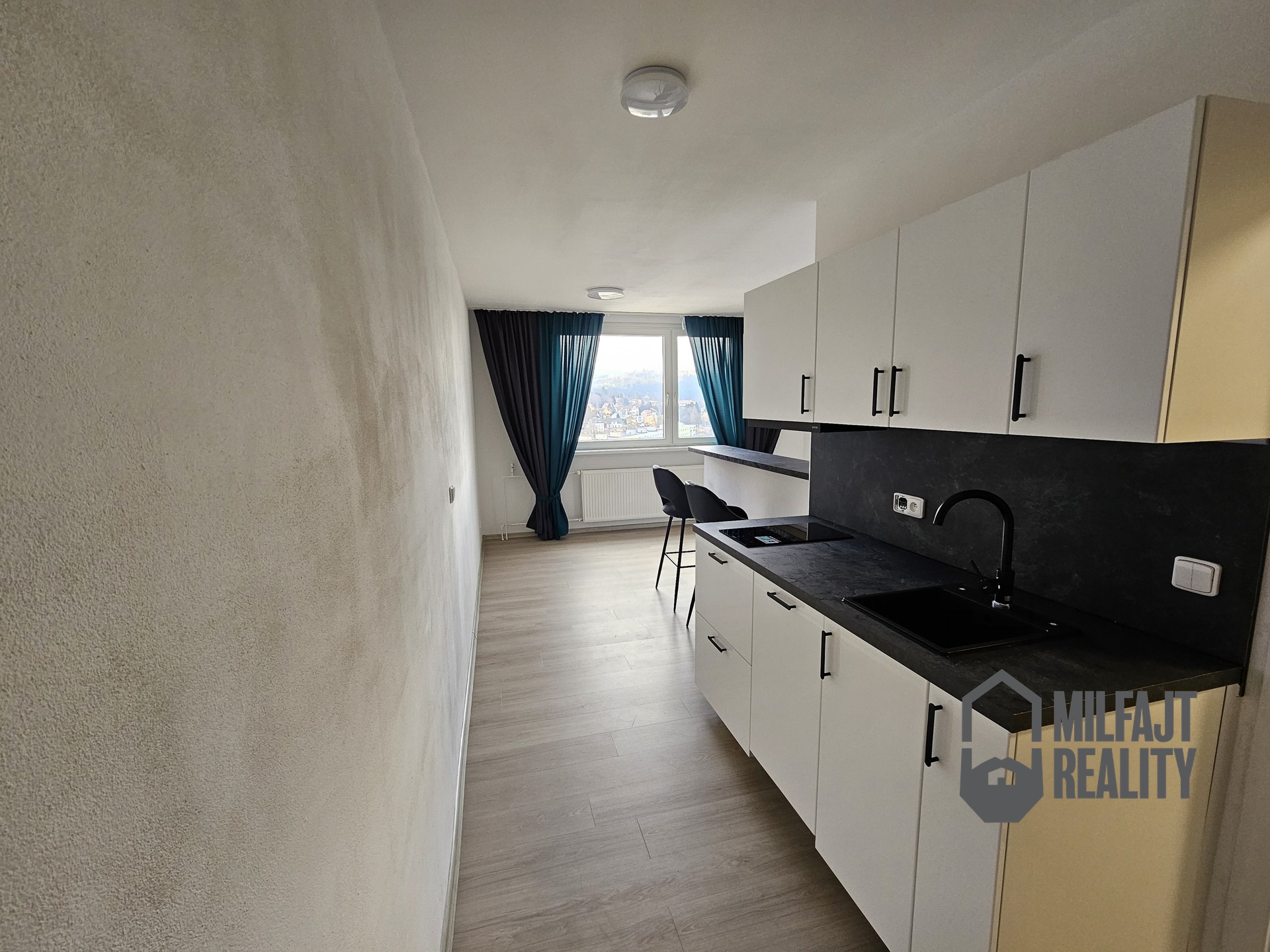 Hledáte nový domov v libereckých Ruprechticích s výbornou dostupností, kompletní občanskou vybaveností a možností upravit si ho přesně podle svých představ?Pak si nenechte ujít tuto nabídku!Byt se nachází v klidné a oblíbené části Liberce – v ulici Borový vrch.Tato lokalita je skvělou volbou pro pohodlné bydlení. V blízkosti najdete obchod, restauraci, poštu i základní a mateřskou školu. Díky výborné dopravní dostupnosti se snadno dostanete do centra města a zároveň máte kousek do přírody – lesopark je v pěší vzdálenosti.Parkování je možné přímo před domem nebo na jednom ze dvou veřejných parkovišť v okolí.Byt o výměře 27 m2 je dispozičně řešen jako 1+kk a nachází se ve 12. patře panelového domu. Díky tomu nabízí nádherný výhled na Liberec. Byt je kompletně nově zrekonstruovaný, včetně zateplení stropu. Jsou zde nové rozvody elektřiny, koupelna i toaleta je s trendy moderními černými doplňky. Kuchyňská linka je včetně nových spotřebičů - lednice s mrazákem, myčky, varné desky, elektrické a mikrovlnné trouby. Místo pro spaní je také velmi dobře vyřešeno a je odděleno jídelním pultem. Je zde prostor i pro menší sedací soupravu. Byt je k nastěhování od 1.12.2025.Zálohy na služby jsou vyčísleny na 1.500 Kč pro 1 osobu. Elektřinu si nájemník přepíše na sebe. Při nastěhování nájemník složí vratnou jistotu 30.000 Kč, nájemné na první měsíc a také provizi RK ve výši 12.500 Kč.Byt je striktně nekuřácký, majitel preferuje nájemníky bez domácích mazlíčků. Byt je určen maximálně pro 2 osoby. Kompletní informace Vám ráda sdělím osobně nebo telefonicky.Neváhejte mě kontaktovat v pracovní dny mezi 8 - 18. hodinou. V ostatní časy poprosím email nebo sms.Budu se na vás těšit na prohlídkách bytu.