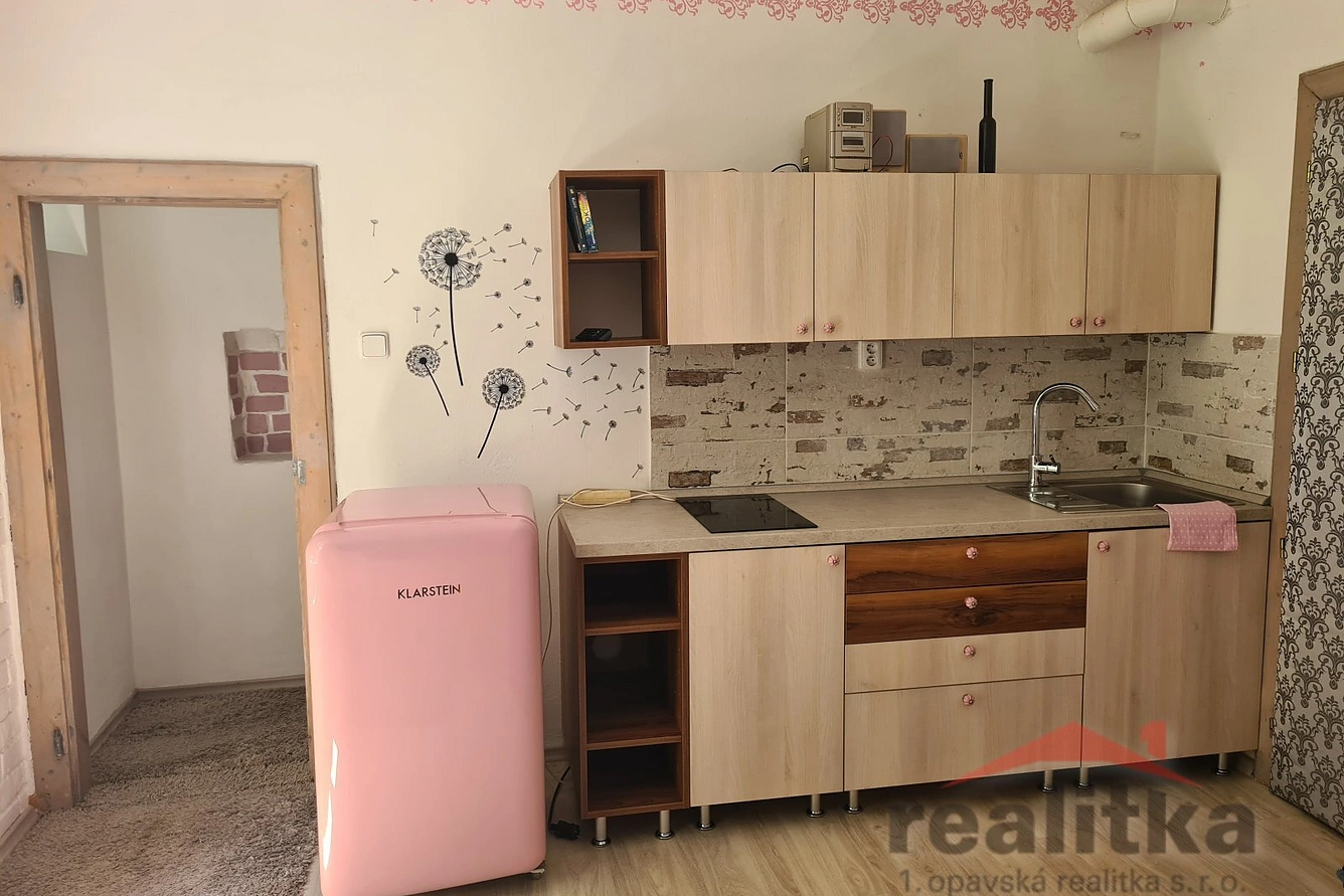 Nabízíme pronájem hezkého, zařízeného bytu se zahradou 1+kk v Opavě na ul. Zacpalova. Byt se nachází v přízemí cihlového domu. Byt je situovaný do zahrady, která je k užívání a s posezením. Byt je zařízený. Je zde kuchyňská linka, lednice, sedačka, stůl. Z pokoje se vchází do koupelny s předsíňkou, kde jsou úložné prostory. V koupelně je sprchový kout, umyvadlo, wc, pračka. Byt je vhodný pro slečnu, ženu, jelikož je zařízený a vymalovaný v růžových tónech. K bytu není sklep. Nájem je stanoven na 7000,-kč, inkaso a služby do 3000,-kč, kauce je 20000,-kč, provize rk 7000,-kč.