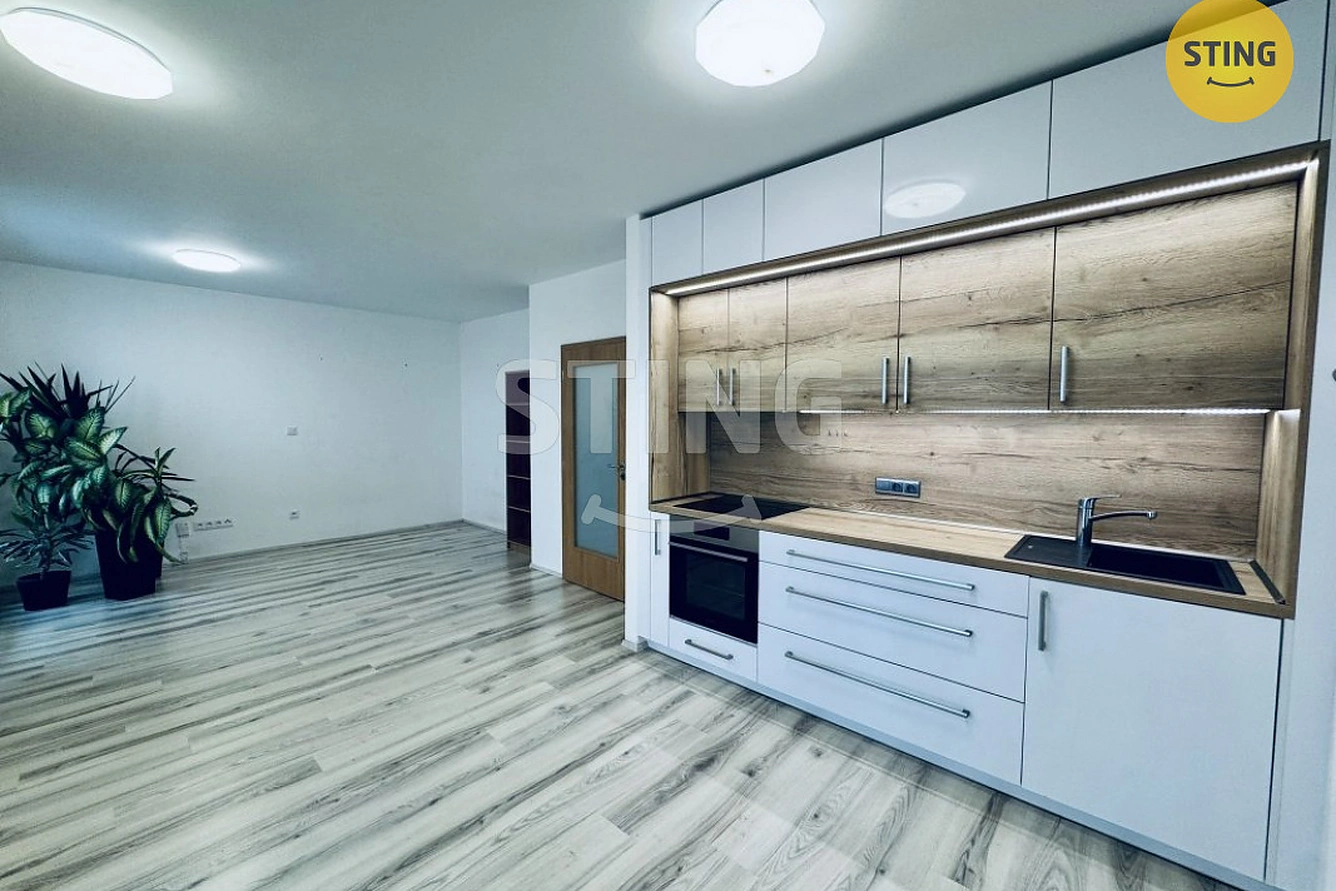 Byt se nachází v 5. NP novostavby bytového domu, prostorný obývací pokoj je vybavený pěknou kuchyňskou linkou s varnou deskou, digestoří a troubou. Byt i terasa jsou orientované na východ, v bytě je díky francouzkým oknům dostatek denního světla. Na podlahách je plovoucí podlaha a dlažba.
