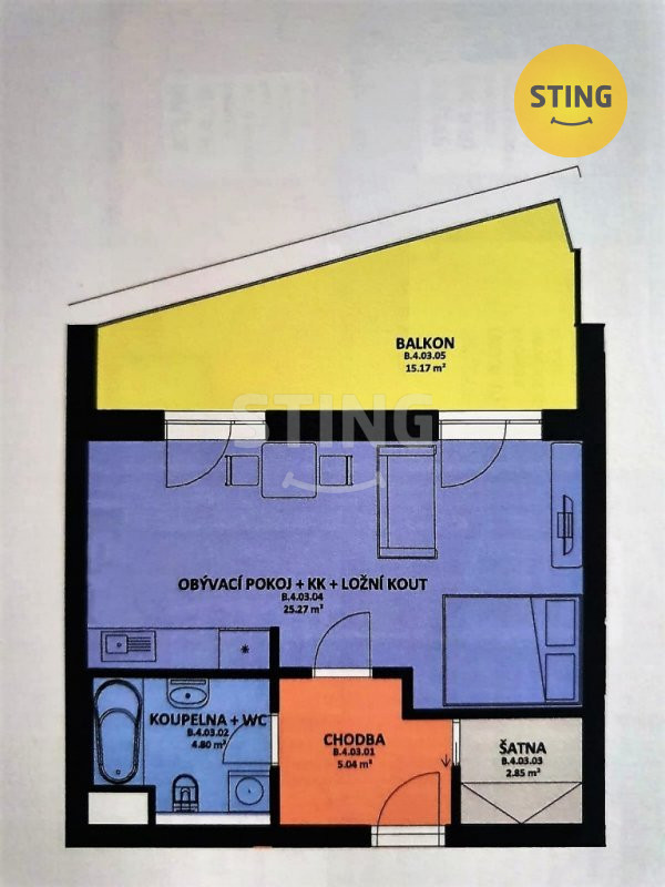 V koupelně se nachází vana, umyvadlo, WC a přípojka na pračku. Výhodou bytu je i vlastní komora v bytě. Další úložné prostory jsou v suterénu domu ve sklepě o velikosti 2 m2. V okolí je veškerá občanská vybavenost. Vhodné buď pro jednotlivce či pár.