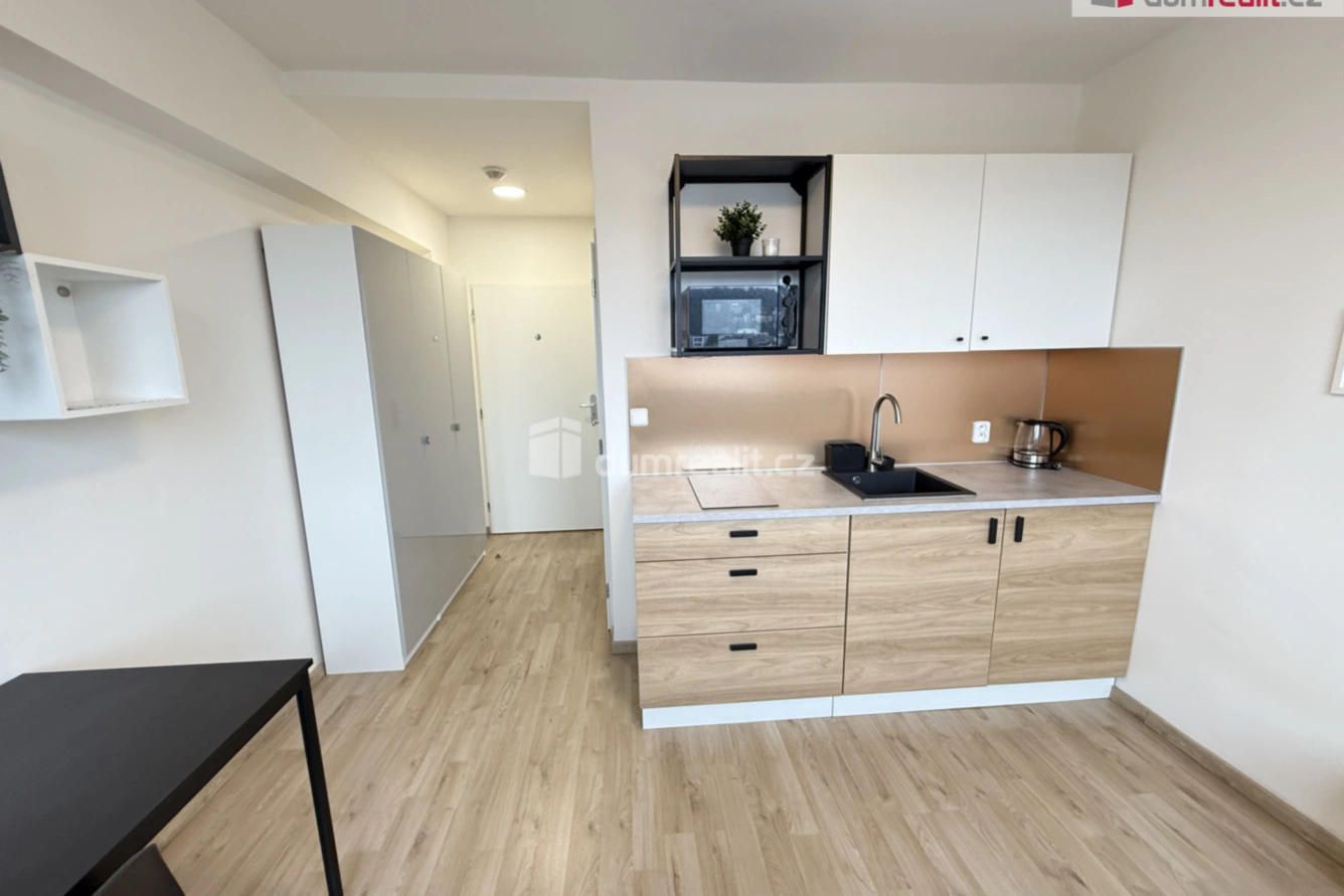 Dumrealit.cz Vám zprostředkuje možný pronájem zařízeného bytu 1+kk na Praze 5 v Jinonicích v 8. patře domu s výtahem, v projektu VBLOKU. Byt se nabízí kompletně zařízený, je menší, ale přesto velmi prakticky dispozičně řešený a plnohodnotně vybavený. Je vybavený moderní kuchyňskou linkou se spotřebiči (lednice, mikrovlnná trouba,sklokeramická varná deska). V prostoru se dále nachází klasický jídelní/ pracovní stůl se židlí a pohodlná malá postel. Koupelna se sprchovým koutem a umyvadlem s rozměrným zrcadlem je obložena bílými obklady a dlažbou modré barvy. Úložné prostory Vám nabídne šatní skříň umístěna na chodbě. Využívat můžete také společné prostory rezidence - zahradu (včetně grilu), komunitní zahrádku pro pěstování bylinek a zeleniny nebo TV room. Zároveň zde funguje nonstop recepce, prádelna, sušárna a fitness centrum. K nastěhování ihned. Doporučuji. Ev. číslo: 652658. Bližší informace Vám sdělí Bc. Roman Šittich, 721 181 818, r.sittich@dumrealit.cz