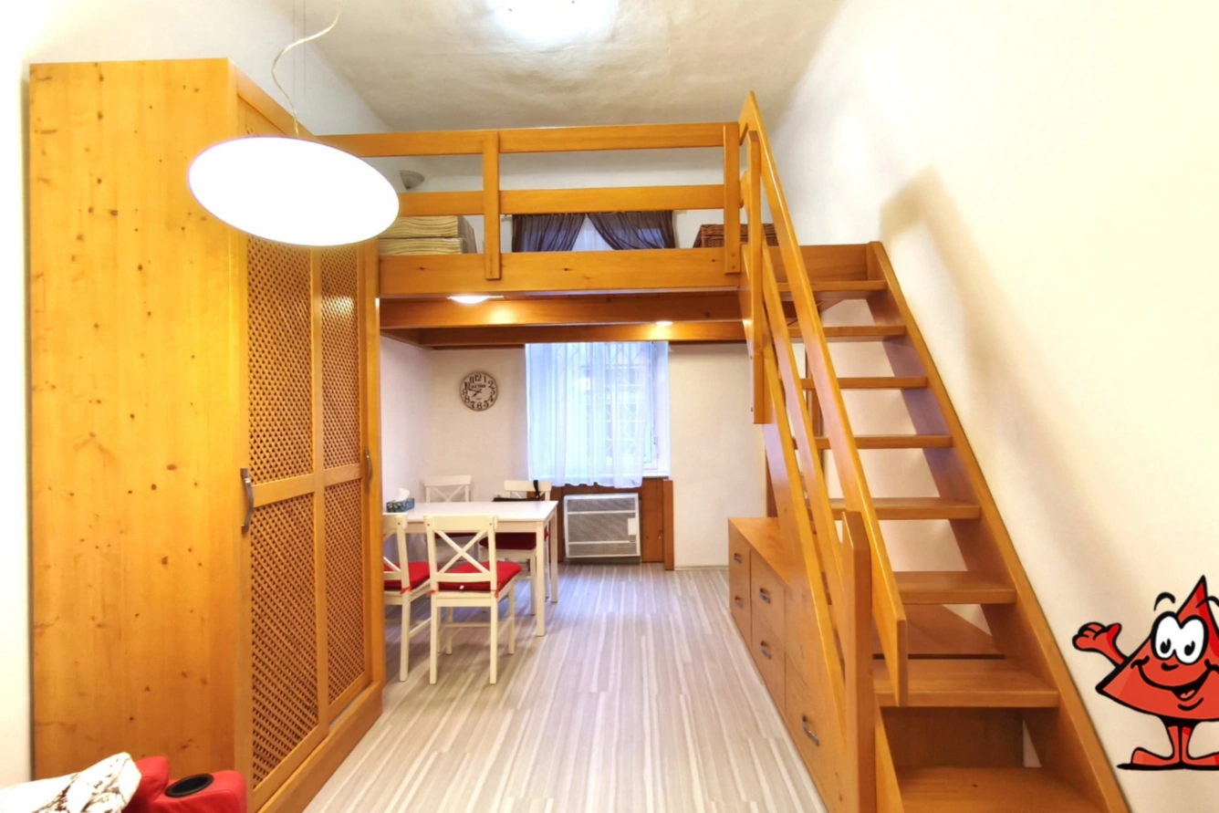 K pronájmu byt 1+KK se sklepní kójí 27,5 m2 byt + 1,5m2 sklepní kóje, byt zvětšen o vestavěné patro na spaní. Byt je v přízemí cihlového domu v ulici Na Bojišti, Praha 2 - Nové Město, nedaleko stanice metra I.P.Pavlova. Byt je zařízený a po rekonstrukci. V Kuchyni nad bytem je další úložný prostor a v předsíni je vestavěná skříň. To vše zlepšuje využitelnost bytu. Byt je vhodný na dlouhodobé pronajímání pro max. 2 osoby. Ihned volné k nastěhování. Byt je zajímavý tím, že i když je v přízemí, poskytuje mimořádnou úroveň soukromí, a je velmi tichý. Nájemce při uzavření smlouvy hradí: 17 500 Kč nájem + zálohy na služby (1000 Kč) + jistotu ve výši 20 000 Kč + provizi RK ve výši 21 175 Kč.