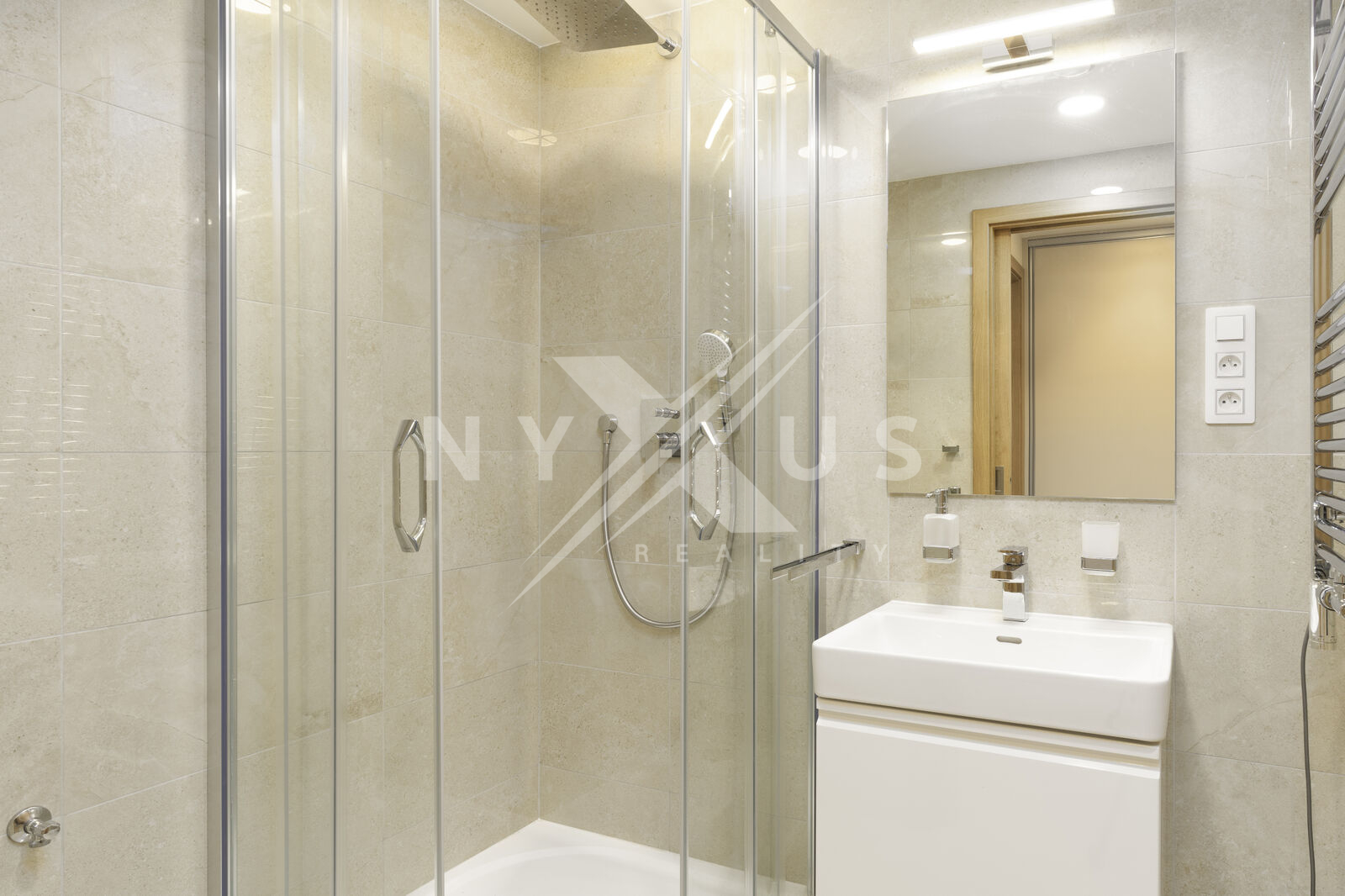 Byt má klimatizaci, bezpečnostní systém, kamerový systém ke vstupním dveřím, před okenní žaluzie, podlahové vytápění, vestavná skříň v chodbě, cirkulace vzduchu, bezpečnostní vložka. garnýže, dotyková led světla v kuchyni.