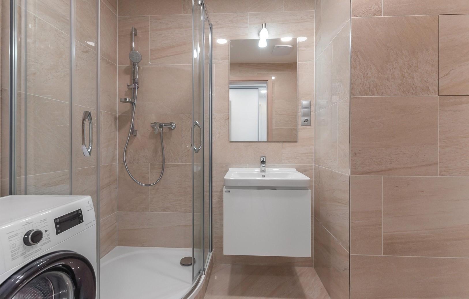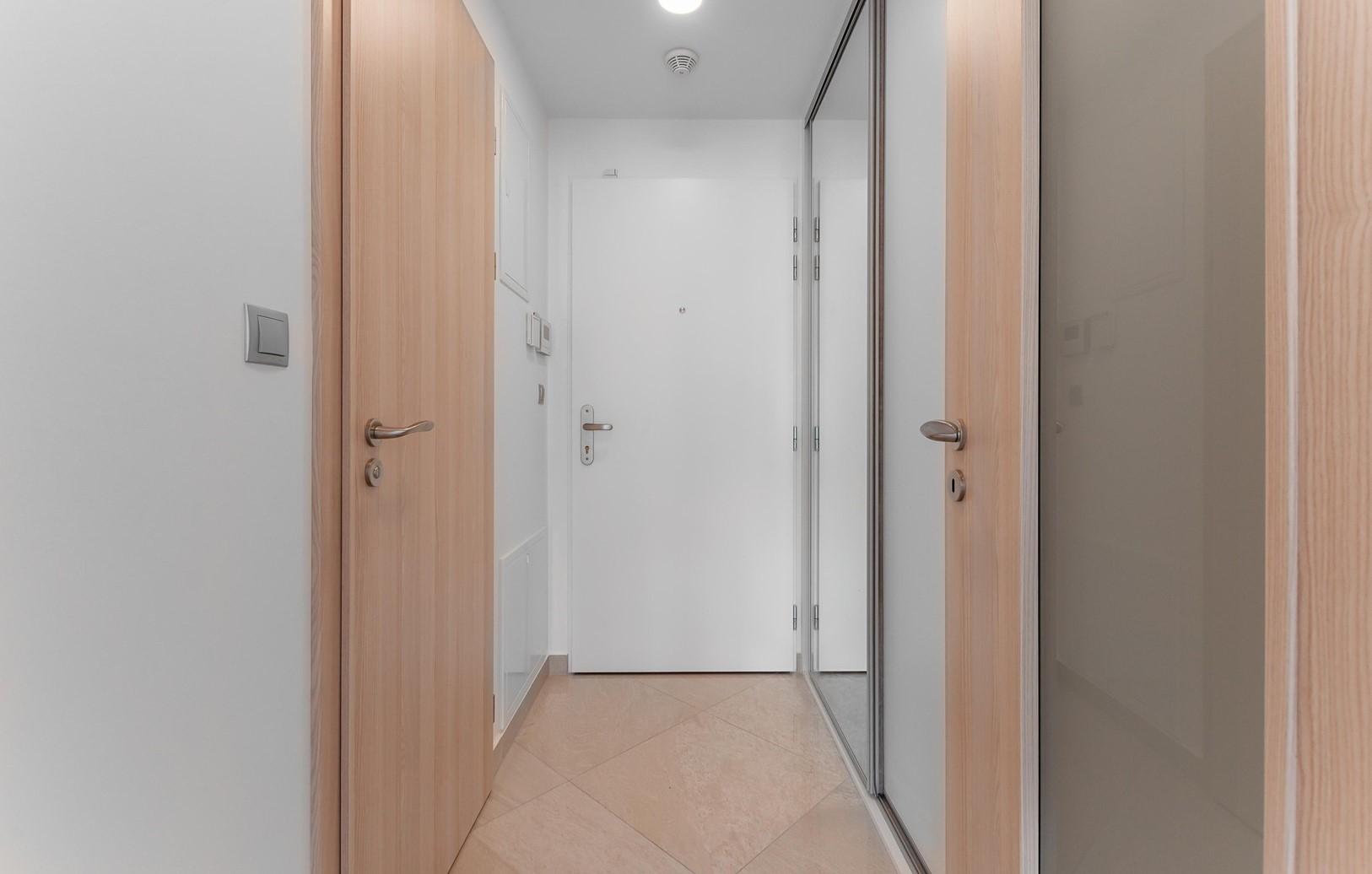 Byt o celkové výměře 28 m2 se nachází v 3. NP a zahrnuje sklep. Disponuje prostorným obývacím pokojem, vybaveným novou značkovou nadstandardní vestavěnou kuchyňskou linkou Hanák včetně kvalitních spotřebičů. Koupelna je vybavena sprchovým koutem, pračkou a je spojena s WC. Předsíň má instalovanou šatní skříň, která nabízí dostatek úložného prostoru. Byt je částečně zařízen.