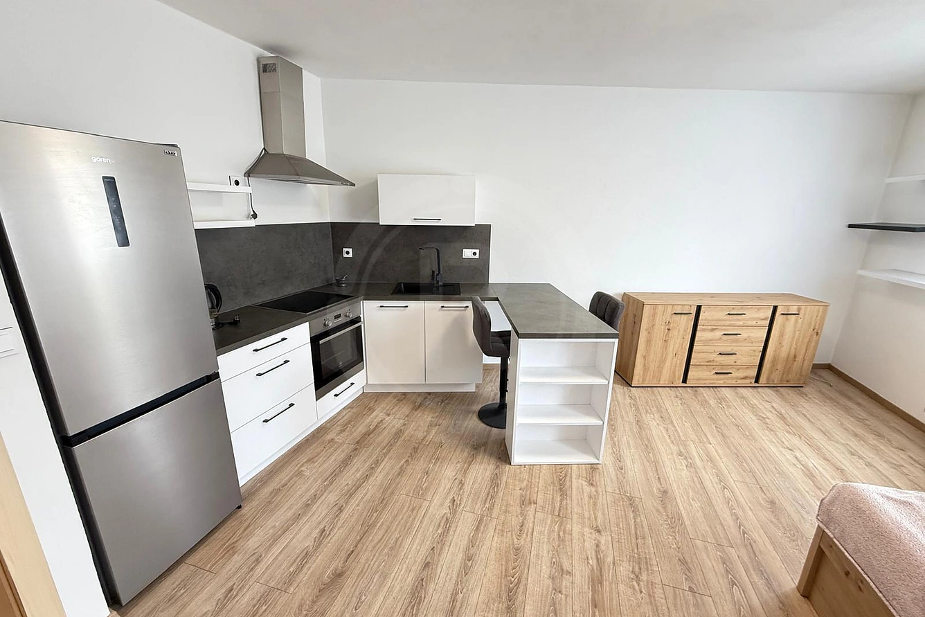 Nabízíme k pronájmu zděný byt 1+kk, v bytovém domě s výtahem, na náměstí Šimona Lomnického v Ševětíně. Bytová jednotka o celkové ploše 33 m2 se nachází v 1. nadzemním podlaží bytového domu s výtahem. Byt sestává z předsíně, prostorného obývacího pokoje s kuchyňským koutem, koupelny se sprchovým koutem a WC. Kuchyňská linka je vybavena vestavěnými spotřebiči (varná deska, trouba, digestoř, lednice s mrazákem). K bytové jednotce náleží také sklep. Parkování možné přímo před domem. Měsíční nájemné činí 10.000, -Kč + cca 2.500, -Kč záloha na energie, kauce 15.000,- Kč. Doporučujeme osobní prohlídku. Volné od 1.1.2026. PENB - B.