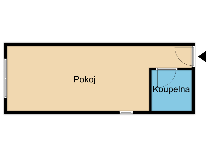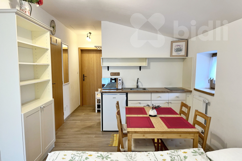 Jedná se o garsoniéru, kuchyň je spojená s obytným prostorem. Koupelna s WC, umyvadlem a sprchovým koutem je samostatně. Celková výměra 25 m2.