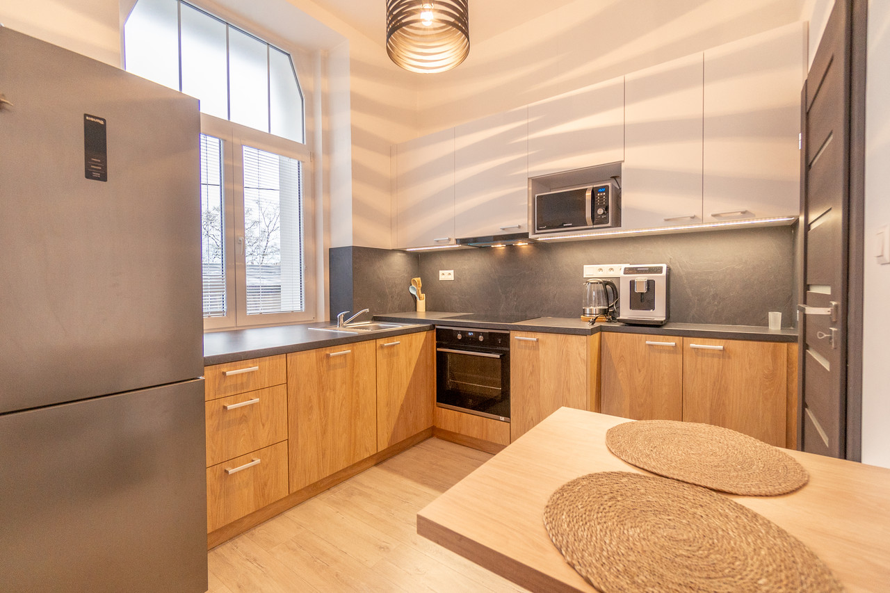 Exkluzivně Vám nabízíme jednu z nově zrekonstruovaných bytových jednotek 1kk a to konkrétně ve 1.NP. o výměře 32,1 m2 v rezidenční vile se zahradou a možností parkovacího stání na oploceném pozemku u domu.Byt sestává z předsíně, koupelny a prostorného pokoje s kuchyňským koutem. Náleží k němu také sklep.K nájmu se platí zálohy na služby na teplo 900,-Kč, voda 500,-Kč/os., osv. a úklid spol. prostor 300,-Kč, odvoz odpadků 60,-Kč/os., sklep 200,-Kč a elektřina se přepisuje na nájemníka. K bytu je vyhrazeno jedno parkovací stání za 950,-Kč které není zahrnuto v ceně nájmu.Jistota se skládá majiteli ve výši dvou holých nájmů a jedno holé nájemné jako provize realitní kanceláři.Ohledně prohlídky bytů, dalších informací neváhejte kontaktovat realitní kancelář
