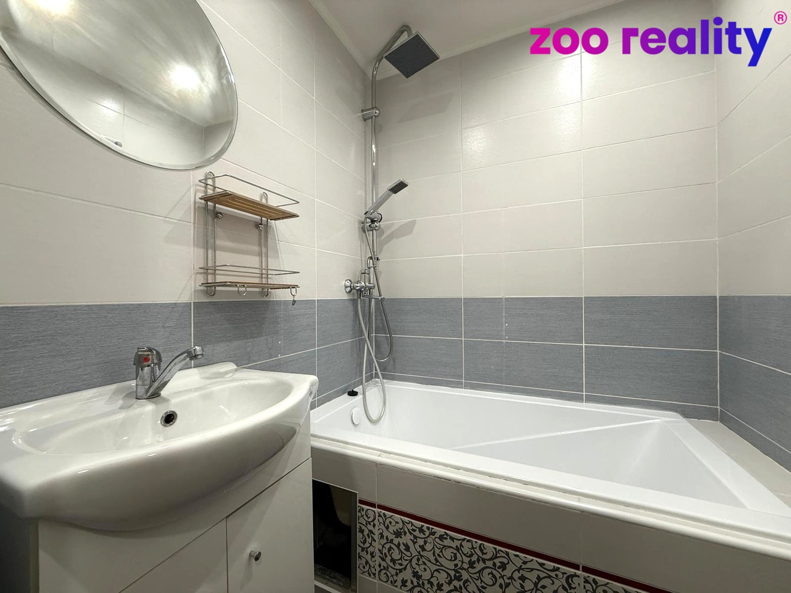 Byt je v dobrém stavu vhodný k okamžitému nastěhování a nabízí možnost přizpůsobení dle vlastních představ a vkusu, protože není vybaven nábytkem. Najdeme zde vstupní chodbu s vestavěnou skříní, upravené koupelnové jádro s oddělený WC, kuchyni s rohovou kuchyňskou linkou s elektrickými spotřebiči a pračkou. Dále se v bytě nachází ložnice a velký obývací pokoj s lodžií. Na podlaze je položena v celém bytě plovoucí podlaha. Byt je napojen na ústřední dálkové topení s radiátory, které zajišťuje příjemné teplo v chladnějších měsících. Teplá voda je zajištěna centrálním dálkovým ohřevem. Aktuálně v bytě probíhají drobné opravy.