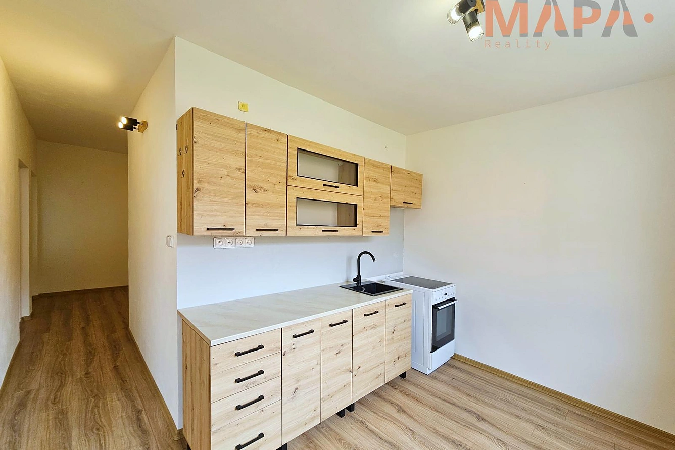 Součástí tohoto hezkého bytu po rekonstrukci je zděná koupelna se sprchovým koutem, WC a kuchyňská linka.