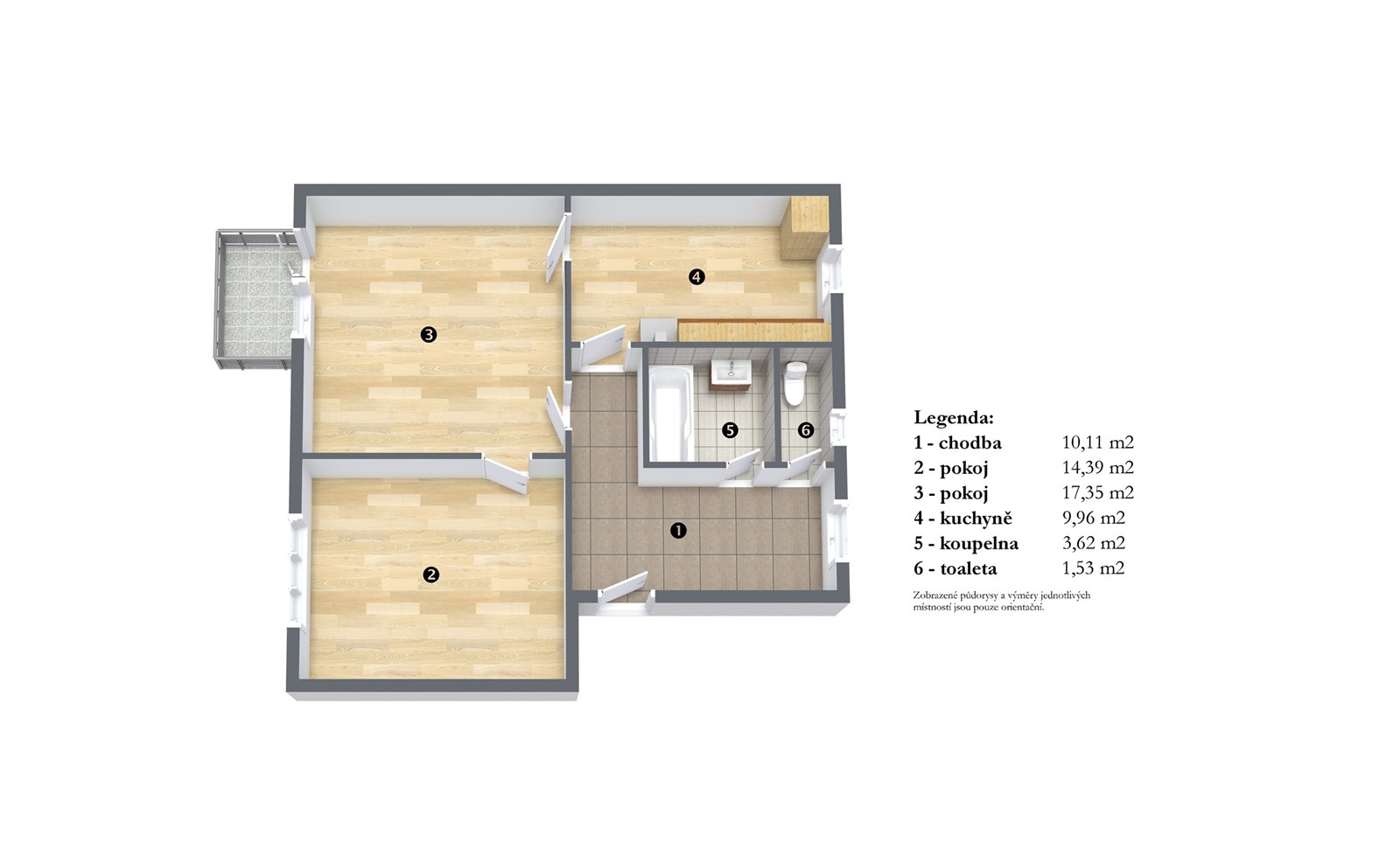 • samostatná toaleta (1,53 m2)